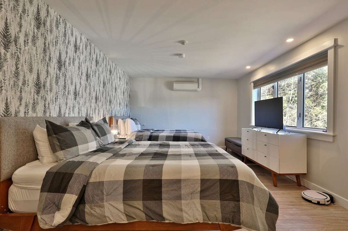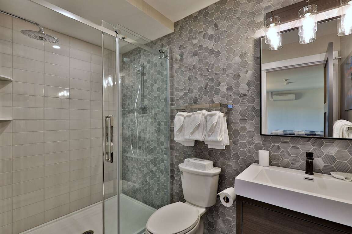 <p>The spacious <strong>bedroom</strong> features <strong>two plush queen beds</strong>, making it a cozy and relaxing haven for up to four guests. An <strong>ensuite bathroom</strong> adds a touch of luxury with its <strong>heated floors and multi-jet shower</strong>, providing a spa-like experience after a day of skiing or exploring. The inviting <strong>main studio</strong> offers a comfortable <strong>queen sleeper sofa</strong>, a gas <strong>fireplace</strong>, and a <strong>smart TV</strong>, making it the perfect spot to unwind. Step out onto the <strong>private balcony</strong>, equipped with seating and an <strong>electric grill</strong>, to enjoy fresh mountain air and al fresco dining in the warmer months.</p>