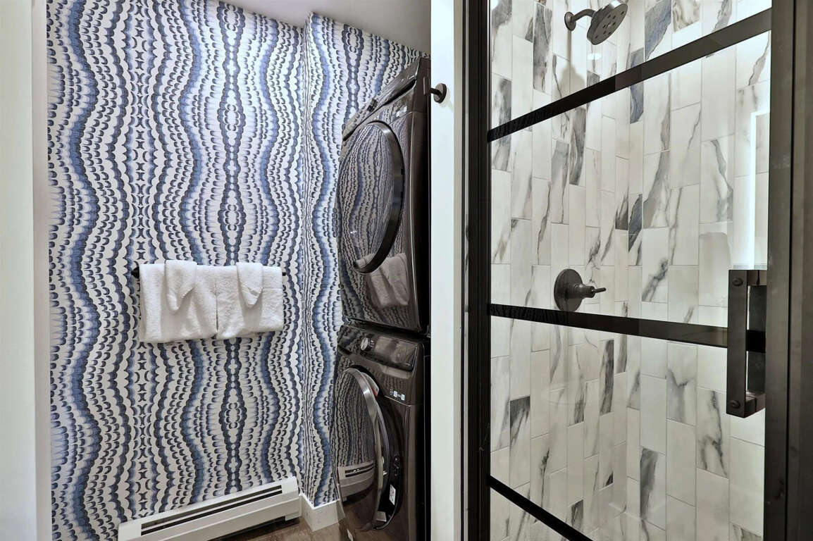 The bathroom is fully updated with a walk-in tile shower, modern vanity, and in-unit washer and dryer. Toss your base layers and socks in the wash at night, and they are ready again for first chair.<br />