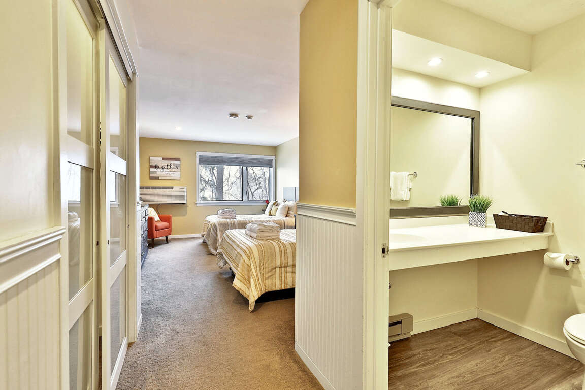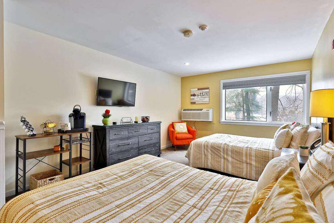 <p>Nestled within the <a href="https://simple.fyi/killington-center-inn-suites-vt-condos/">Killington Center Inn and Suites</a>, this renovated studio offers a cozy and convenient retreat in the heart of Vermont’s ski country. Designed for up to four guests, the studio features <b>two queen beds</b>, perfect for recharging after a day on the slopes.</p>