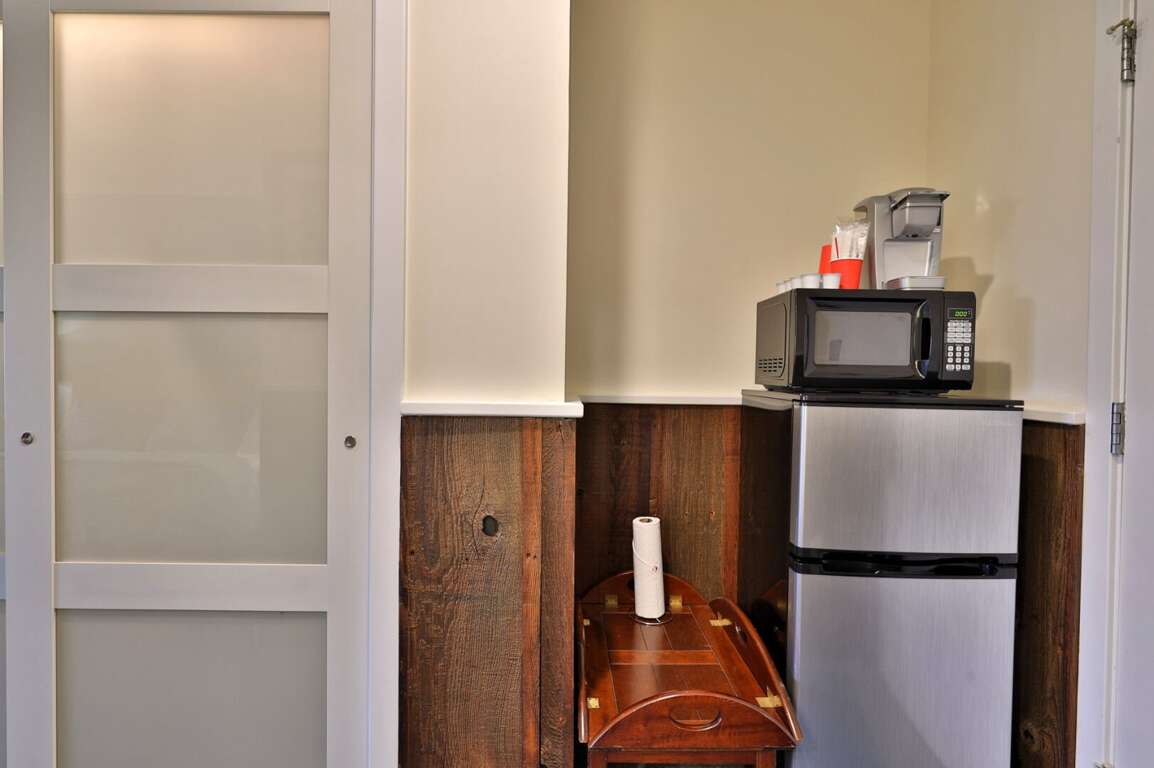 <li>Mini-fridge, Keurig & microwave for quick meals.</li>
