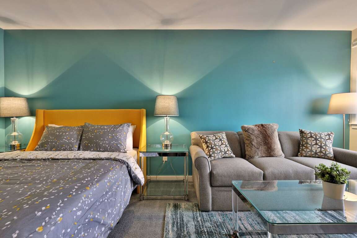 <li>Comfortable queen bed + queen sofa bed.</li>