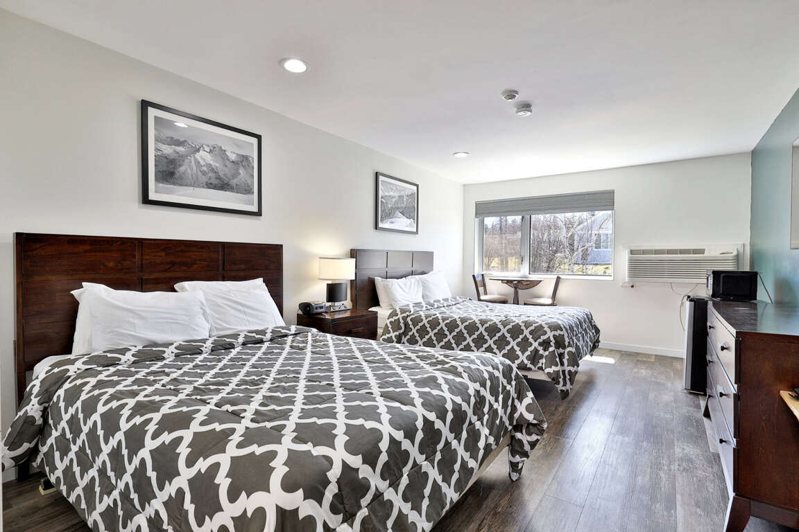 <p>Welcome to your perfect getaway at <a href="https://simple.fyi/killington-center-inn-suites-vt-condos/">Killington Center Inn and Suites</a> in Killington, Vermont! This renovated hotel-style studio is designed with your comfort and convenience in mind, ensuring a memorable stay. The studio features <strong>two queen beds</strong> with plush bedding, an ensuite bathroom with modern amenities, a smart TV for entertainment, and high-speed WiFi to keep you connected. You’ll also find a mini fridge, microwave, and coffee maker for easy snacks and drinks, plus a small table and chairs, perfect for dining or getting work done. (Note: This is a hotel-room style unit without a kitchen.)</p>