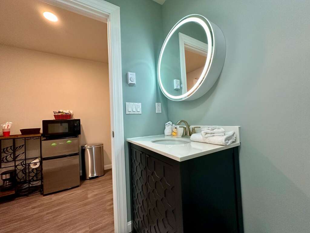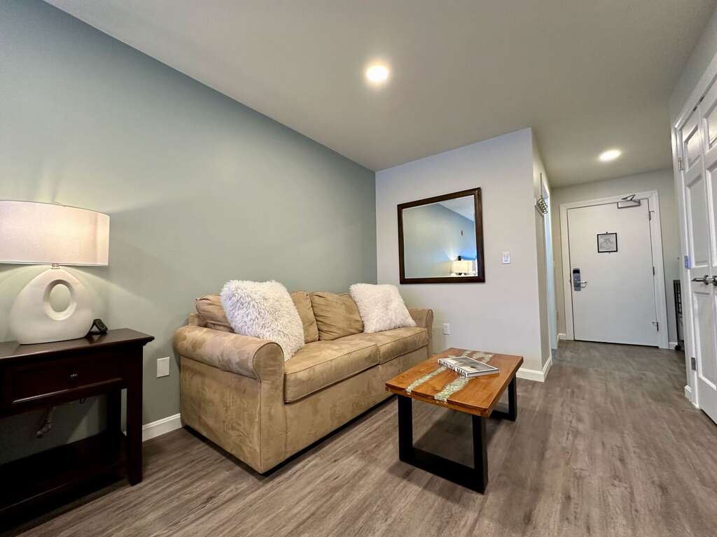 <p><strong>Comfort & Convenience: </strong>Rest easy on the plush queen bed or relax on the queen sofa bed. The ensuite bathroom has a refreshing shower, while the mini-fridge, Keurig, and microwave make mornings simple. Unwind with your favorite shows on the Smart TV with streaming services after a day of fun.</p>
