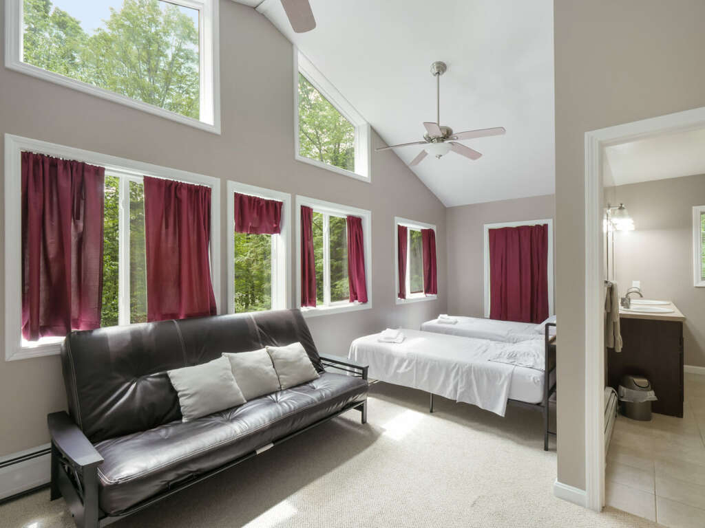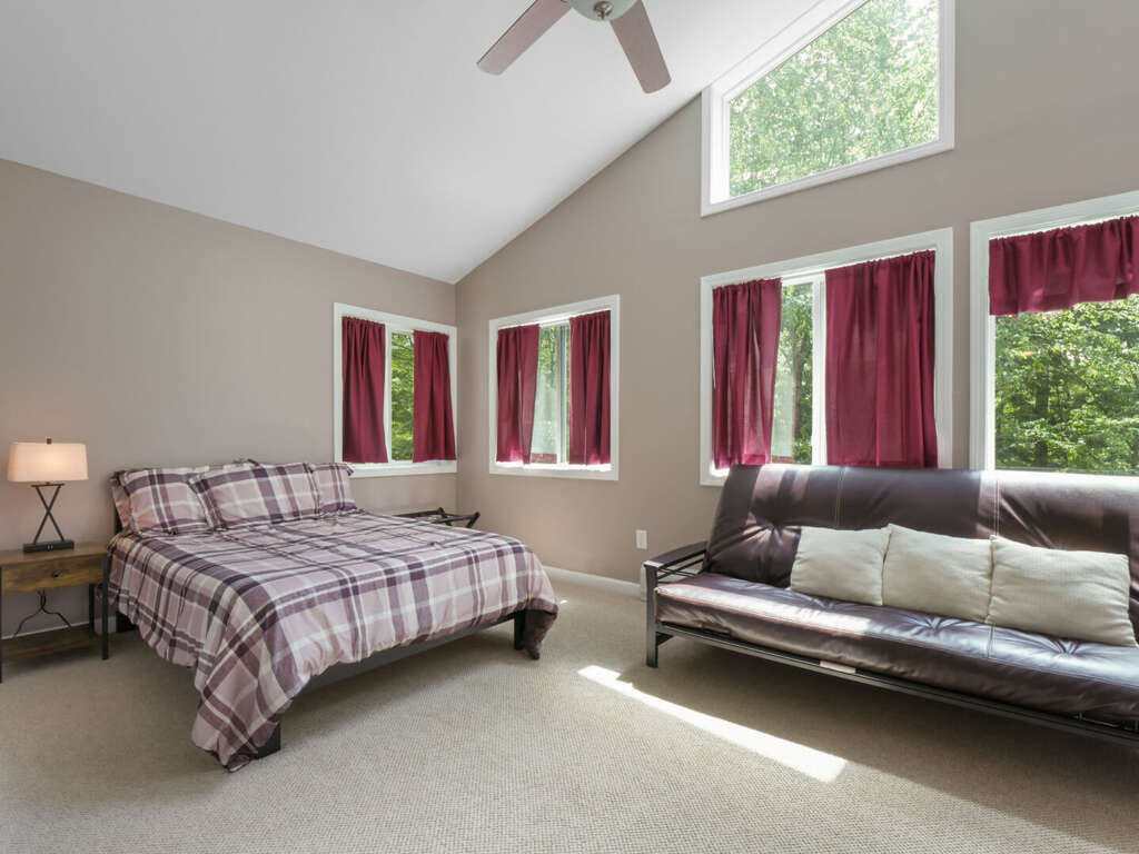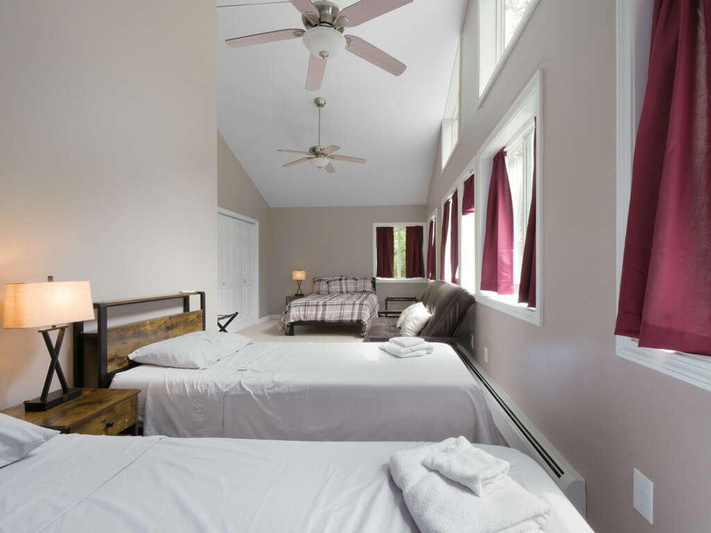 <li>Bedroom 3: Double bed, futon, and two twin beds - vaulted ceiling, ensuite with jetted tub.</li>