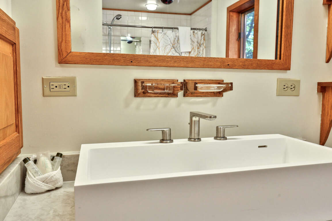 <p>A short 300-foot walk down a marked path brings you to <strong>private waterfront access</strong> on Kent Pond. Guests can launch kayaks or paddle boards, fish from the shore, or relax while watching wildlife such as loons and beavers. Paddle across the pond to reach a hidden waterfall and swimming hole along the Appalachian Trail.</p>