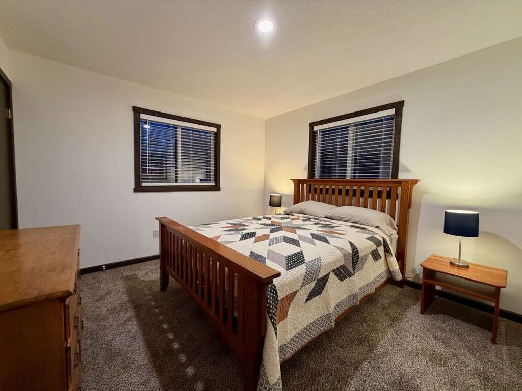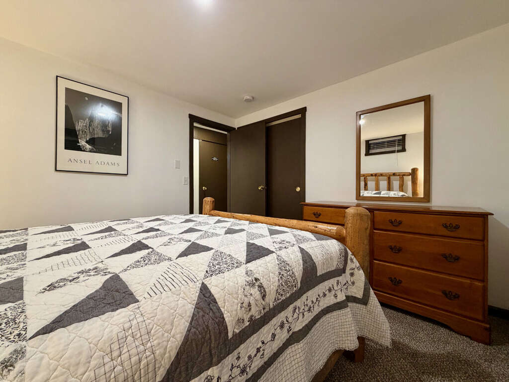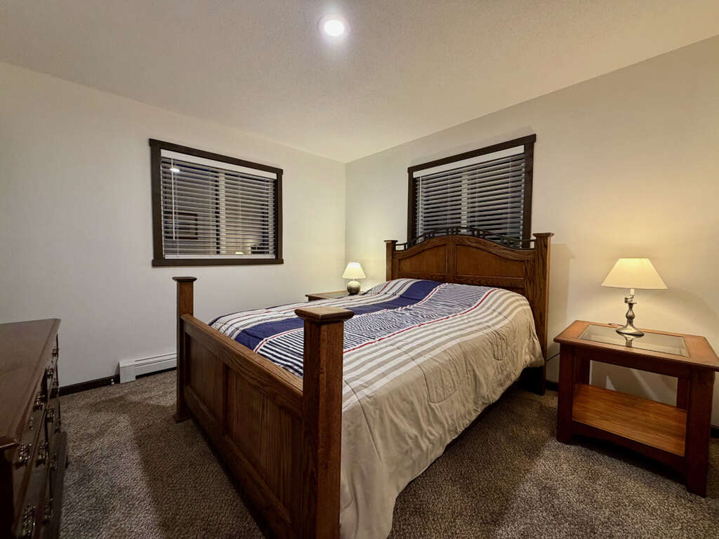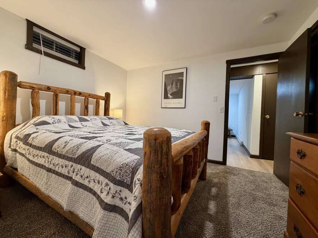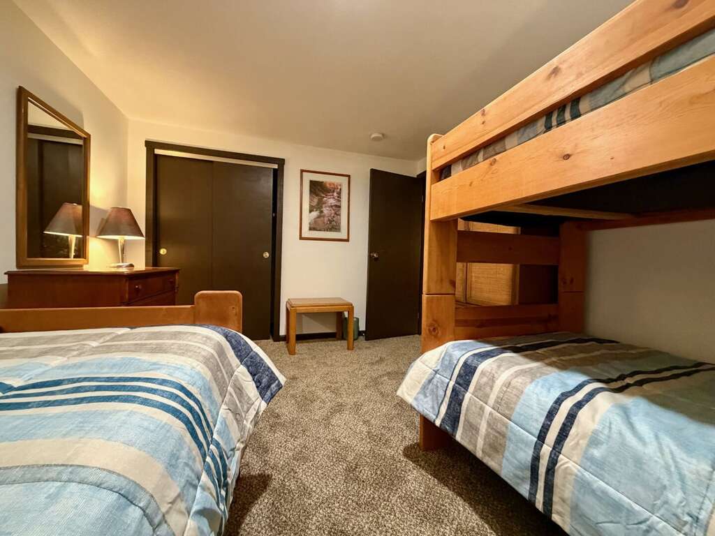<li><em>The Lower Level (Ground Floor): </em>Perfect as a <strong>"Games Zone"</strong>, this level allows kids to have their own space for social time simultaneously. It features a <strong>third gathering area</strong>, a <strong>secondary kitchen</strong> with extra <strong>dining</strong> seating, one <strong>Queen bedroom</strong>, one <strong>Twin/Bunkroom</strong>, a <strong>full bathroom</strong>, and a <strong>second mudroom</strong> for additional gear storage.</li>