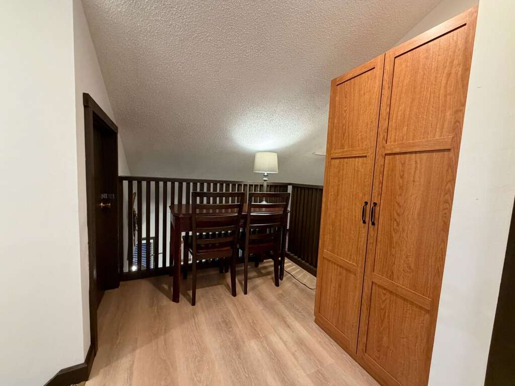 <li><em>The Upper Level (Second Floor): </em>This level offers a dedicated <strong>loft workspace</strong> for those who need a corner to work remotely. Sleeping arrangements on this floor include one <strong>Queen bedroom</strong> and one <strong>Twin/Bunkroom</strong>, complemented by a <strong>full bathroom</strong>.</li>