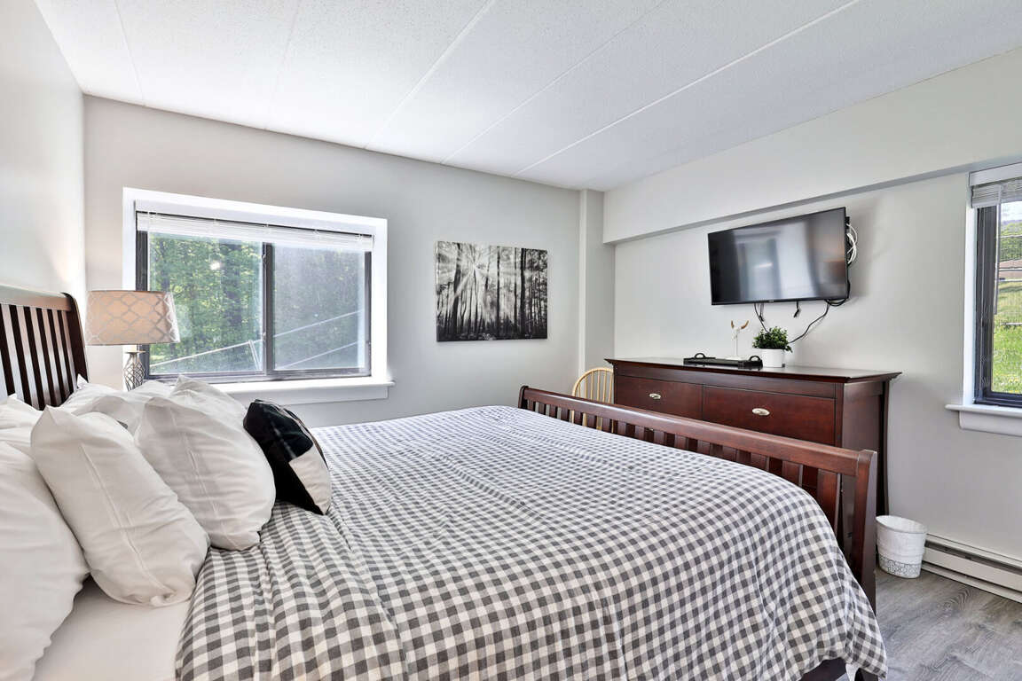 <p>The sleeping arrangements are designed for comfort and flexibility, making this condo ideal for Killington family getaways or trips with friends. The <strong>master bedroom</strong> features a king bed, the <strong>second bedroom</strong> offers a queen bed, and the <strong>third bedroom</strong> is perfect for kids or friends with two bunk beds. (Sleeps <strong>8 guests</strong> total.)</p>
