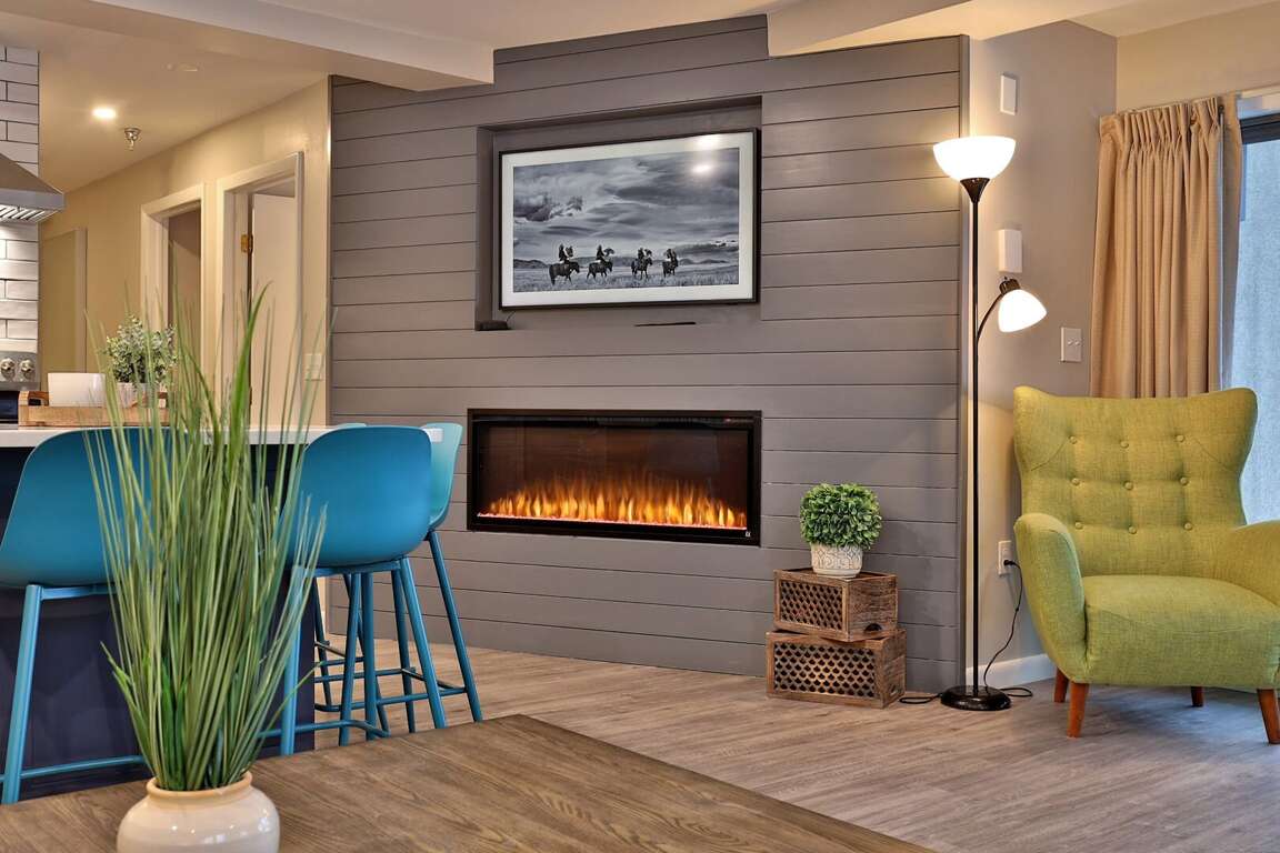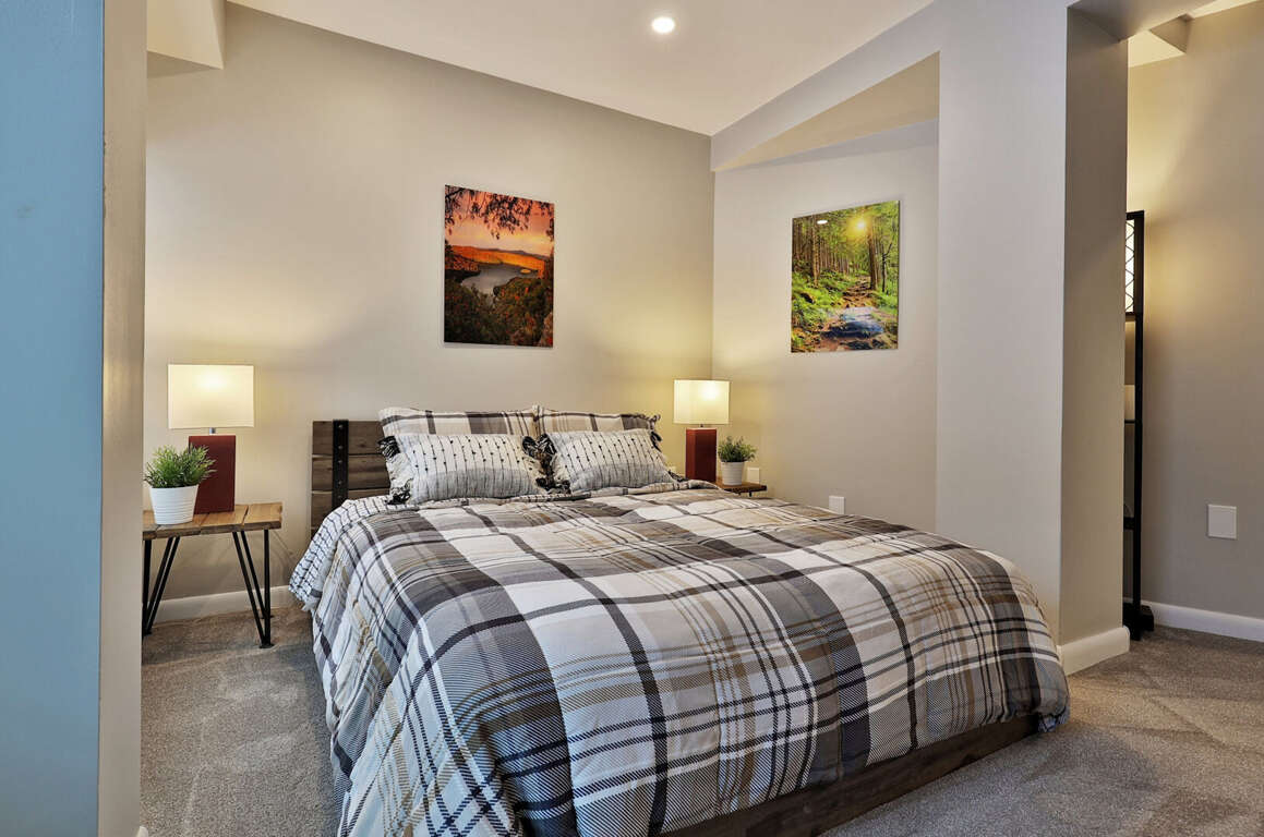 <p>The condo sleeps up to <strong>six guests</strong>, featuring a <strong>queen bedroom</strong> and a fun <strong>bunk bed room</strong> (twin/full), ideal for kids or friends. A <strong>queen sleeper sofa</strong> in the living room provides extra space. Both bedrooms include TVs, while the open-concept living area boasts an electric <strong>fireplace</strong>, <strong>smart TV</strong> with streaming services, and breathtaking <strong>mountain views</strong>. For summer stays, portable AC ensures your comfort.</p>