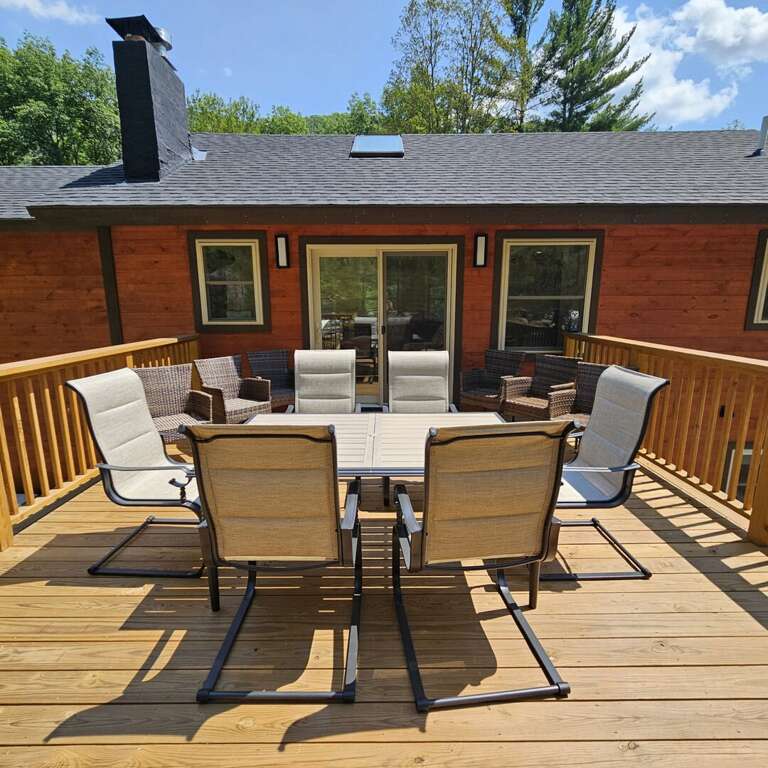 <li><strong>Summer, Fall, and Spring</strong>: Gather around the fire pit, roast marshmallows, play outdoor games, or just relax in the quiet, wooded surroundings. Savor the views from the large deck, and take advantage of <strong>complimentary</strong> golf, mountain biking, gondola, and adventure center passes (limited availability).</li>