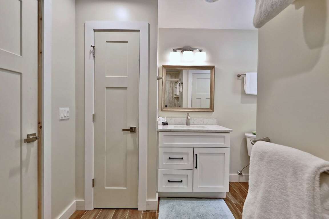 <p>Start your stay in the welcoming <strong>mudroom</strong>, with plenty of space for gear, leading to two comfortable bedrooms and a full bathroom equipped with a <strong>washer and dryer</strong>.</p>