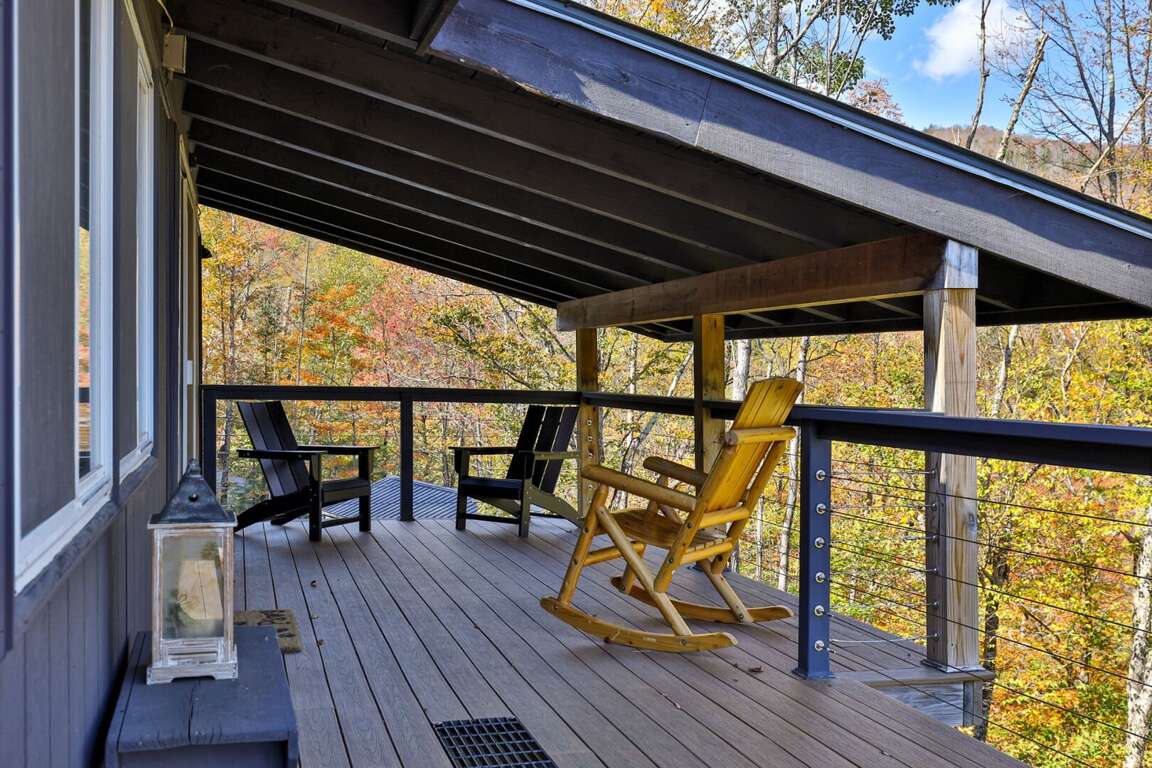 <p>Step out to the expansive <strong>wraparound deck</strong> with <strong>grill</strong> and dining area, or enjoy the <strong>private hot tub</strong> and <strong>fire pit</strong> surrounded by mountain air and serene woods.</p>