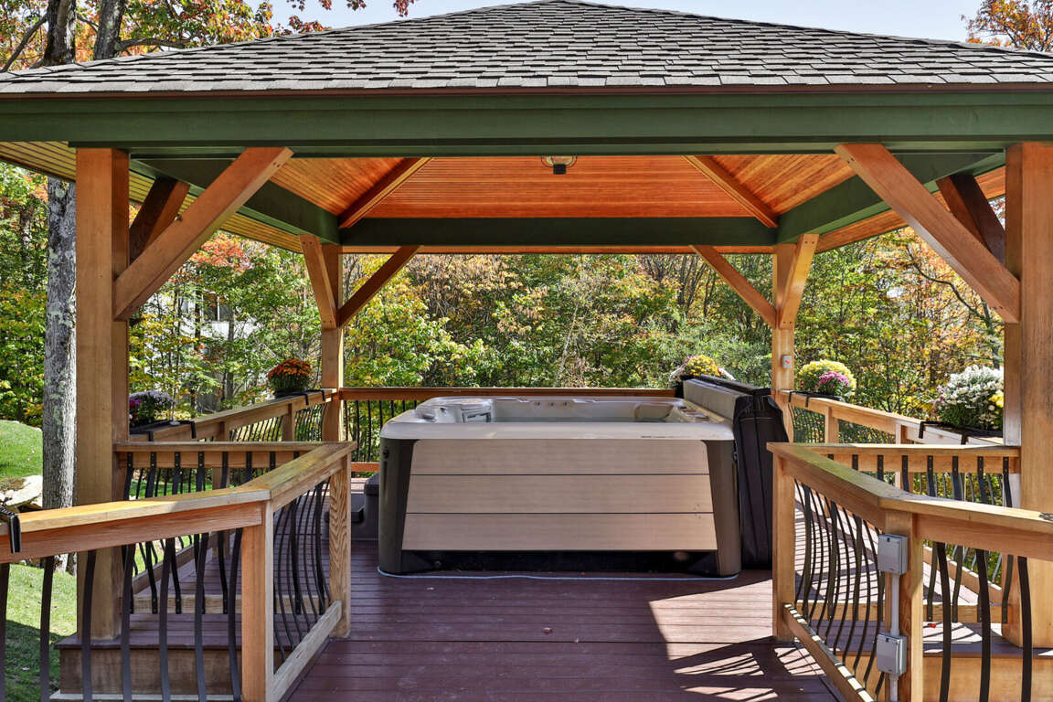 <p>Step outside to enjoy the expansive <strong>deck</strong>, complete with a <strong>private eight-person hot tub</strong> and stunning <strong>panoramic views</strong>. Whether soaking under the stars or grilling up a feast, this space is perfect for unwinding after a day on the slopes.</p>