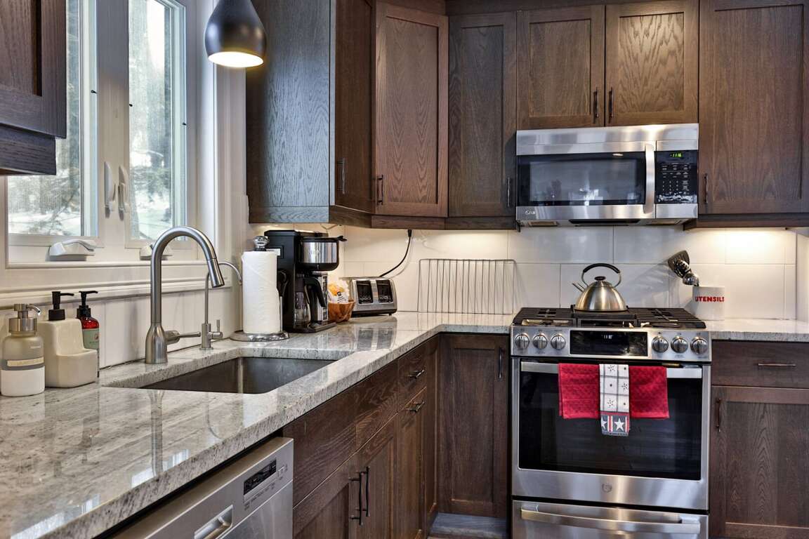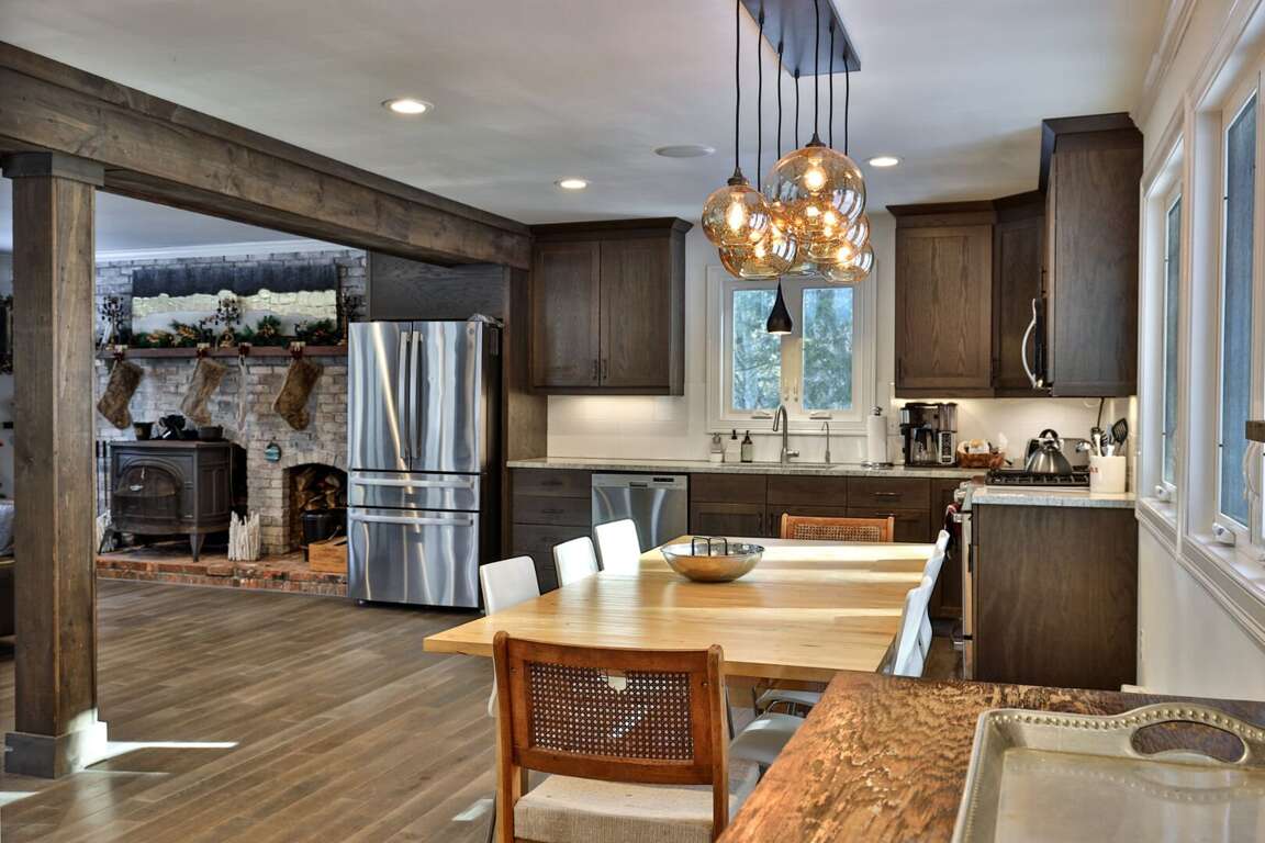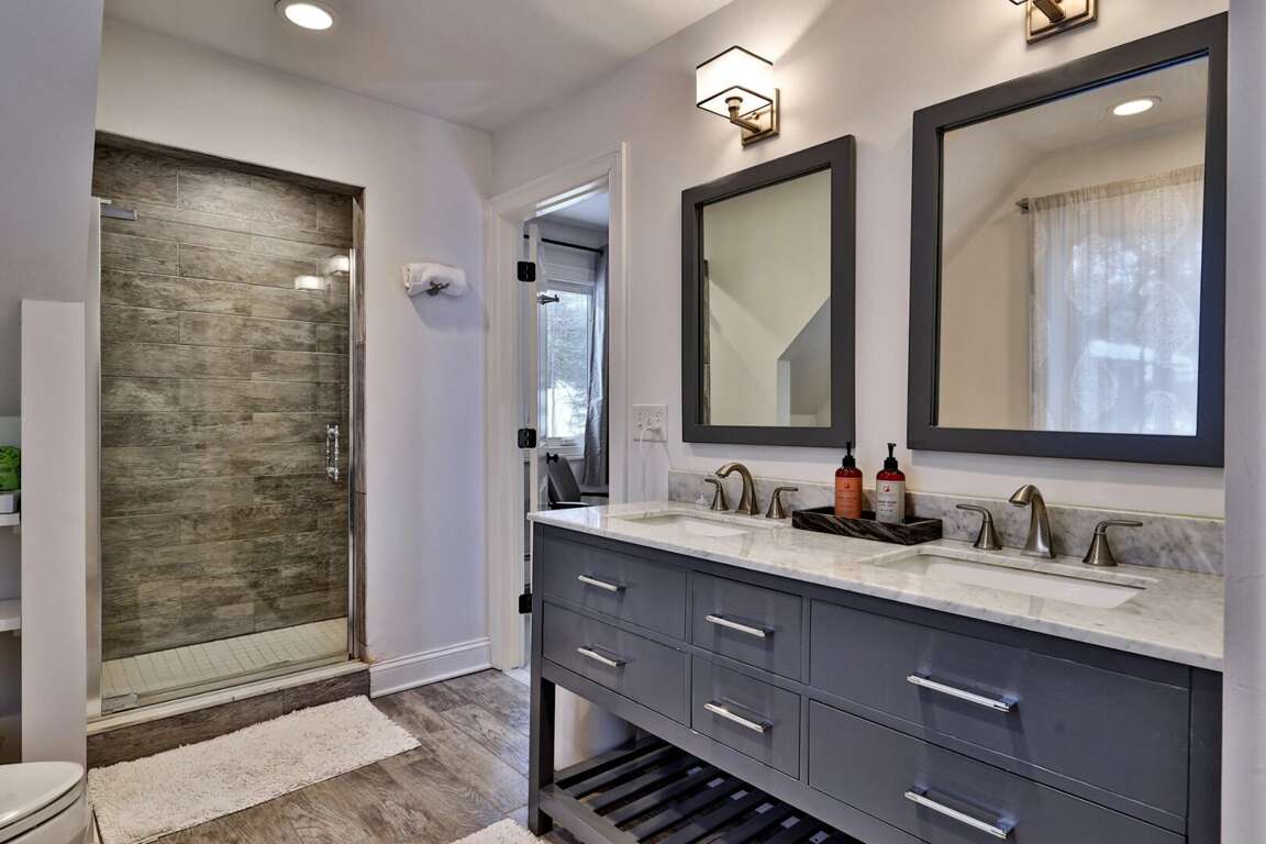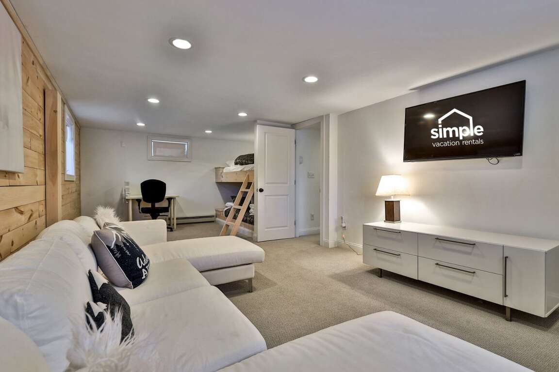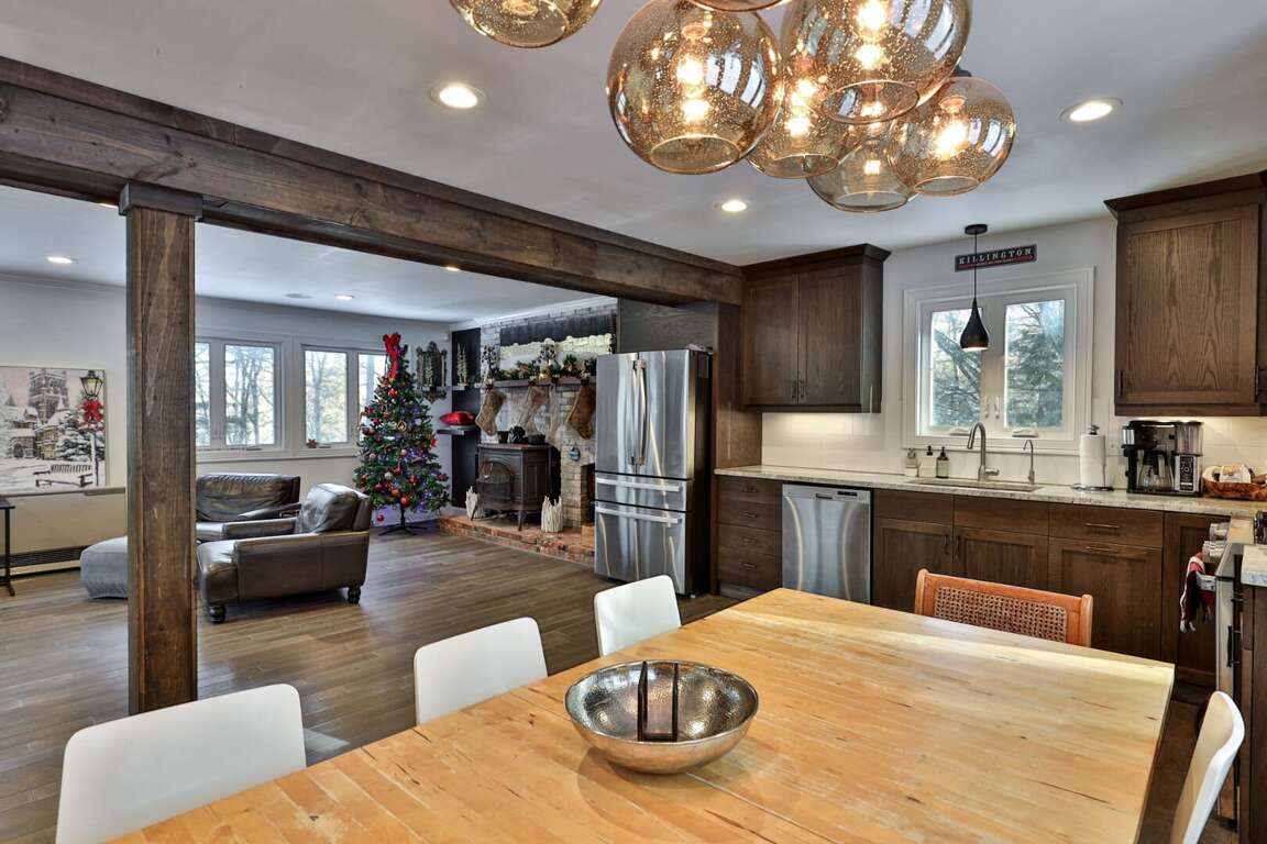 Every detail chosen with the adventure family in mind. You shouldn’t have to settle for a generic condo when you can have a three-story, fully renovated mountain home that works as hard as you do. When you book Summit House on George directly through our local team at Simple Vacation Rentals, you gain exclusive access to preferred ski and snowboard rental discounts with our local partners, as well as limited lift ticket deals. This insider advantage means less time in the rental shop and more time on the mountain. We installed a commercial-grade boot dryer and custom storage cubbies in the dedicated entry mudroom so your gear is always dry and ready for the next session. Because you are positioned just one minute from the Access Road and five minutes from the K-1 Base Lodge, you can skip the morning traffic and hit the slopes before the resort parking lots even fill up. The three-story layout provides the separation families need to truly decompress without feeling crowded. Every bedroom is designed for sleep quality rather than budget, ensuring you wake up ready for another day on the trails. The home sleeps up to 8 guests comfortably. The dedicated upper-level loft serves as a professional outpost with dual mahogany desks and ergonomic seating, situated far enough from the living area to ensure total focus during your remote-work blocks. When the workday ends, prepare group meals in the full kitchen featuring a five-burner gas stove and gather around the massive 8-person dining table designed for family connection. The main level kitchen and natural wood dining table create a central hub for family meals and social time. To ensure total transparency, please note that the wood-burning stove pictured is decorative only and unavailable for guest use. However, the home is fully renovated and climate-controlled for consistent warmth, including heated tile floors in the upstairs primary bathroom for a warm start to cold Vermont mornings. Pets are welcome to join the adventure. Parking for up to four vehicles is provided in the flat, easy-access driveway; there is no guest access to the garage. By booking through Simple Vacation Rentals, you are supported by a Killington-based team that lives here year-round. You have a direct line to real people, not a call center, ensuring professional cleaning standards and 24/7 local support for everything from trail recommendations to maintenance needs. Guests also receive a Curated Local Guide with insider tips on crowds, dining, and lift deals.Renovated 3-Floor Mountain Home with Exclusive Rental Deals and 5-Minute K-1 Access