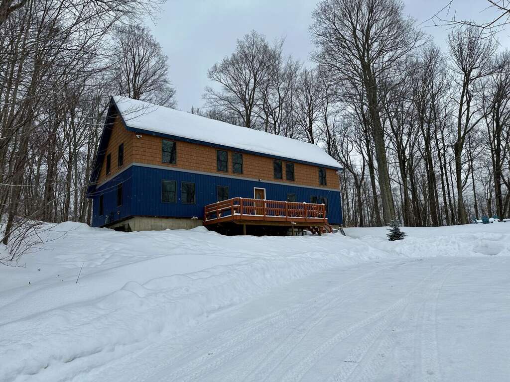 Winter exterior view of The Cabin at Killington, our vacation rental home in Killington, Vermont.