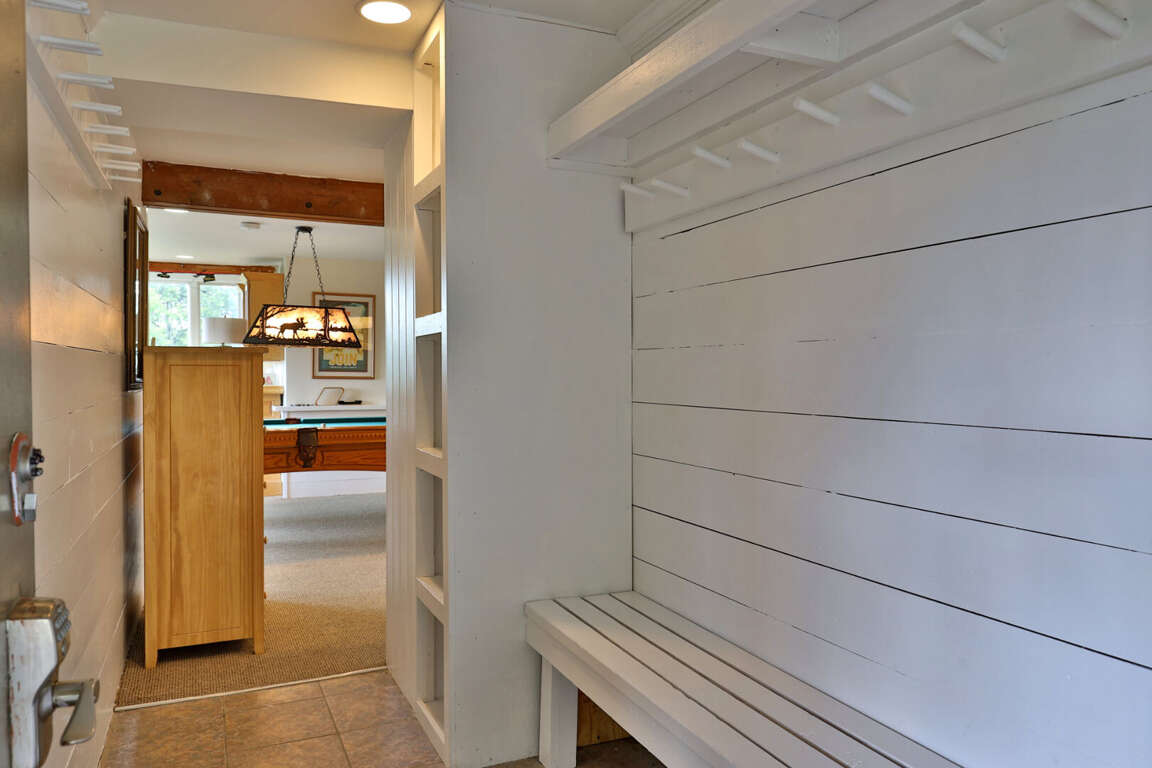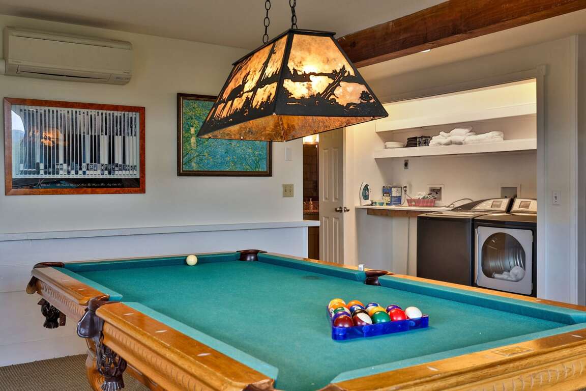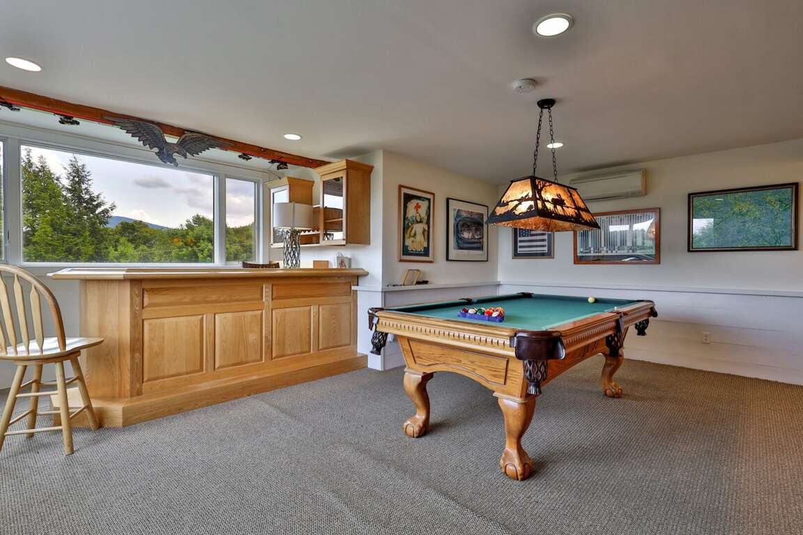 <li> Game room with bar and pool table.</li>
