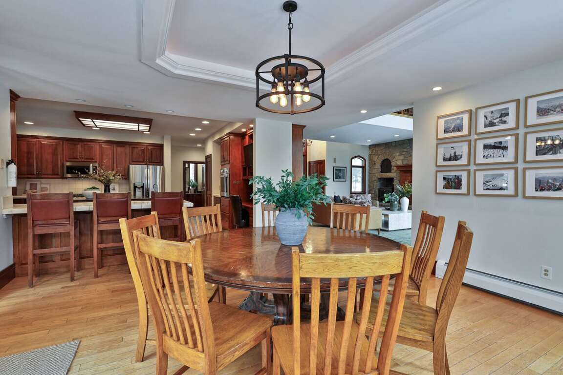 <p>The gourmet kitchen is fully equipped with high-end appliances, cookware, and a BBQ grill connected to the house’s gas supply, making it ideal for hosting group meals. The dining room and great room, anchored by a wood-burning fireplace, offer the perfect setting for gathering after a day on the slopes. Guests also enjoy high-speed Wi-Fi, eight flat-panel HDTVs, and premium cable programming throughout the house, including in the bedrooms and game room.</p>