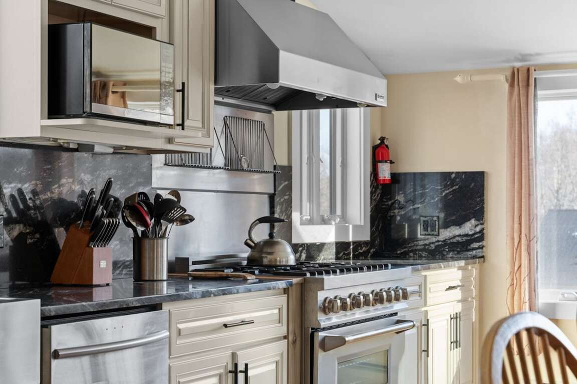 <p>The fully equipped chef’s kitchen is stocked with cookware, dishware, and modern appliances for effortless meals. Step outside to the gas-connected BBQ grill for al fresco dining with mountain views. High-end furnishings, premium cable TV, Bluetooth-compatible stereo system, and high-speed Wi-Fi throughout ensure comfort and convenience.</p>