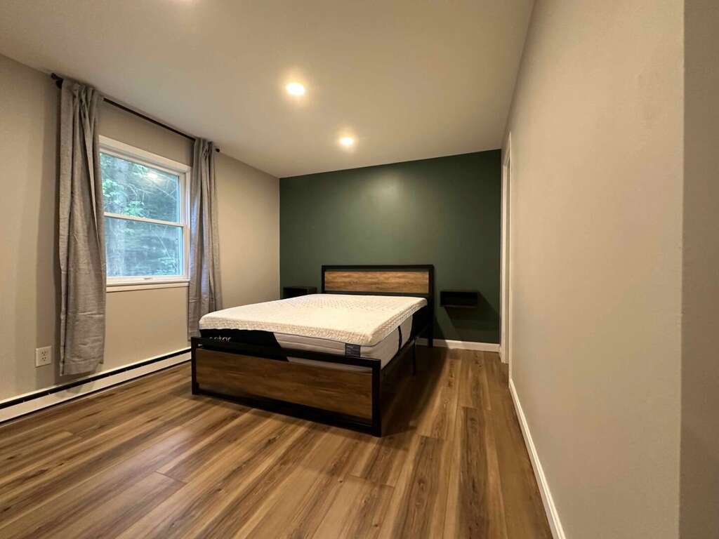 <p>Built <strong>for two couples or a group of four</strong>, this ground-level home features <strong>two separate bedrooms</strong>, each equipped with one <strong>Queen Nectar mattress</strong> on a <strong>modern platform frame</strong>. With integrated lighting and <strong>large windows</strong> that look out into the woods, these rooms offer a quiet buffer from the world. You will wake up to natural light, ready for coffee before heading out for the day.</p>