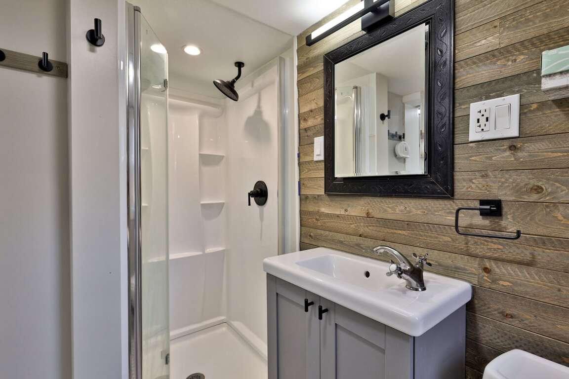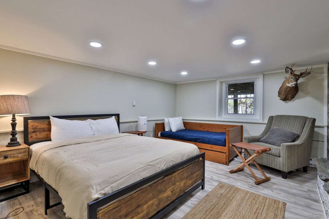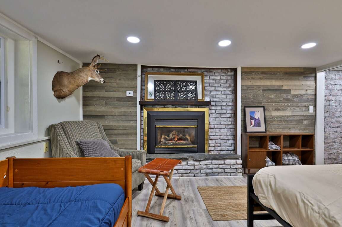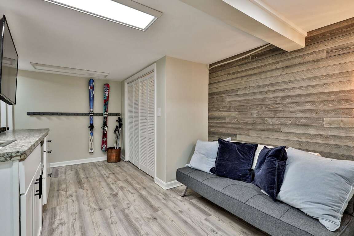 <p>That <strong>main living room fireplace</strong> is the perfect spot to end the day, but the dedicated <strong>gear room</strong> on the lower level is where the adventure begins. It has its own ski and snowboard <strong>racks</strong>, a <strong>wet bar</strong>, and a <strong>second lounge</strong> area, giving your group space to spread out, tune gear, or just relax.</p>
