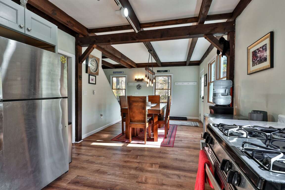 <p>Just a <strong>5 minute drive</strong> from the Snowshed Lodge, this home is built for skiers and riders who value comfort, function, and a place to gather. You get the authentic Vermont chalet vibe, from the warm <strong>wood beams</strong> to the <strong>brick fireplace</strong>, but with the practical updates your group needs.</p>