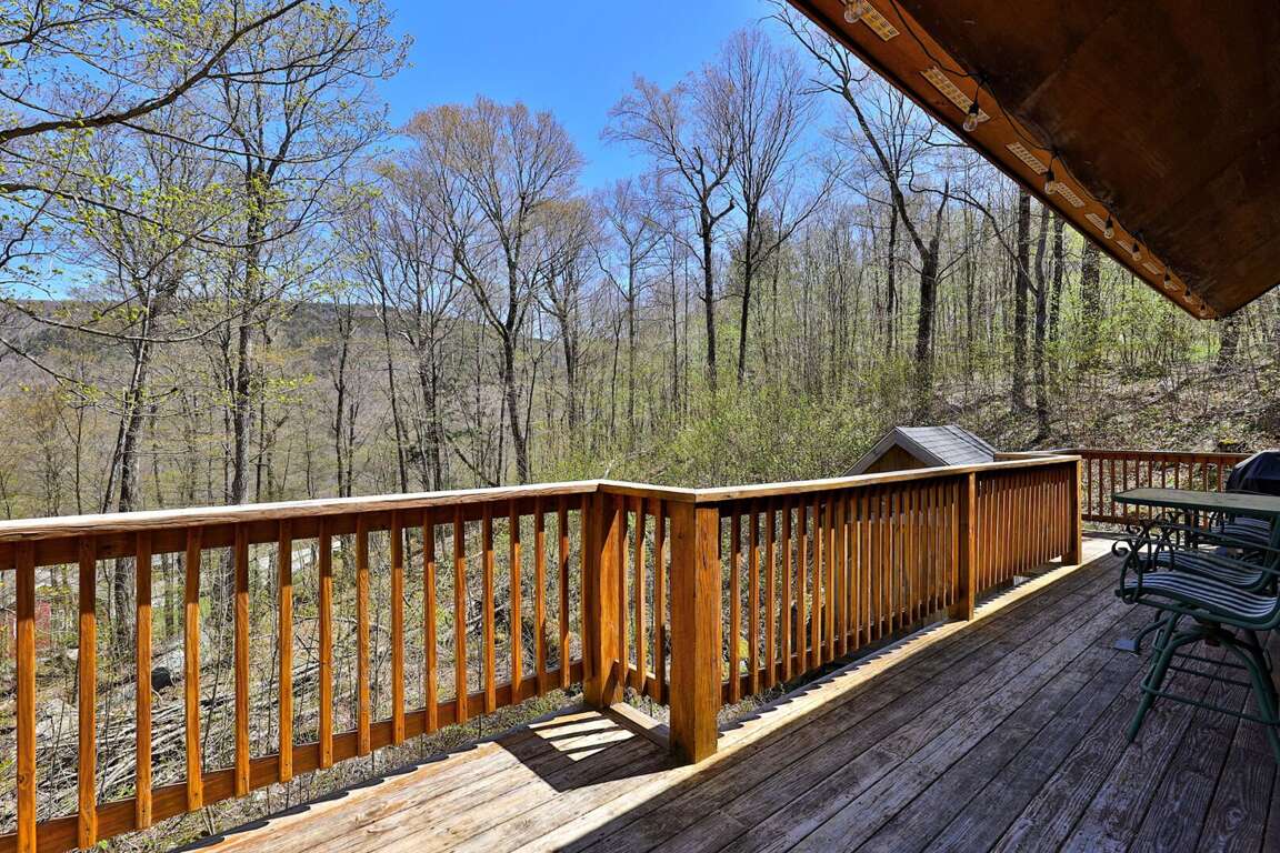 <li>Outdoor Space: A back deck featuring a grill, ideal for outdoor dining and enjoying the serene mountain views.</li>