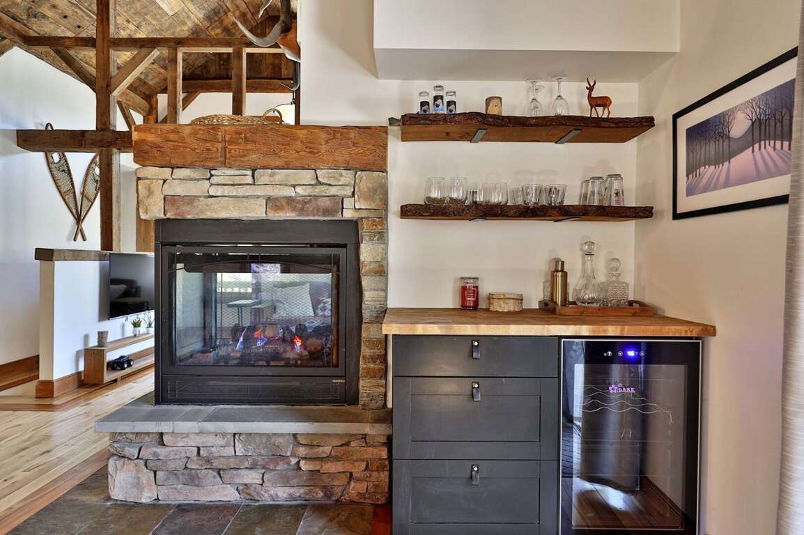 <li>Living Space: Spacious living area with a warm gas fireplace, perfect for relaxing after a day on the slopes.</li>