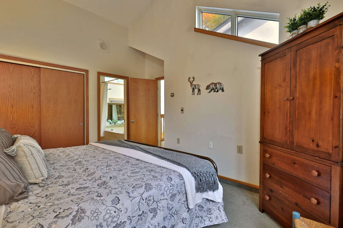 <li>Upstairs primary bedroom with king bed and ensuite bathroom</li>