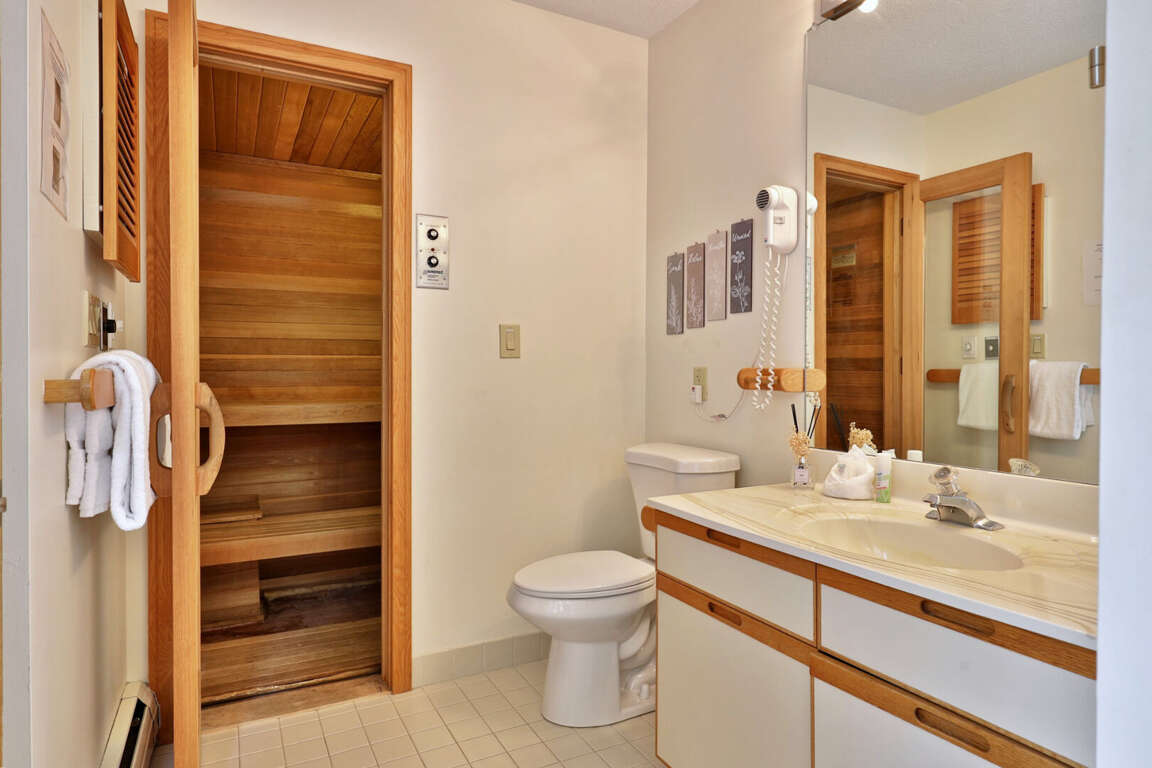 <li>The Woods Amenity Center at the condo complex is a short drive up the private road and features an indoor pool, sauna, hot tub, gym and spa. Hours vary by season.</li>