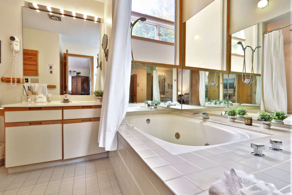 <li>Jacuzzi tub and sauna in the ensuite bathroom</li>