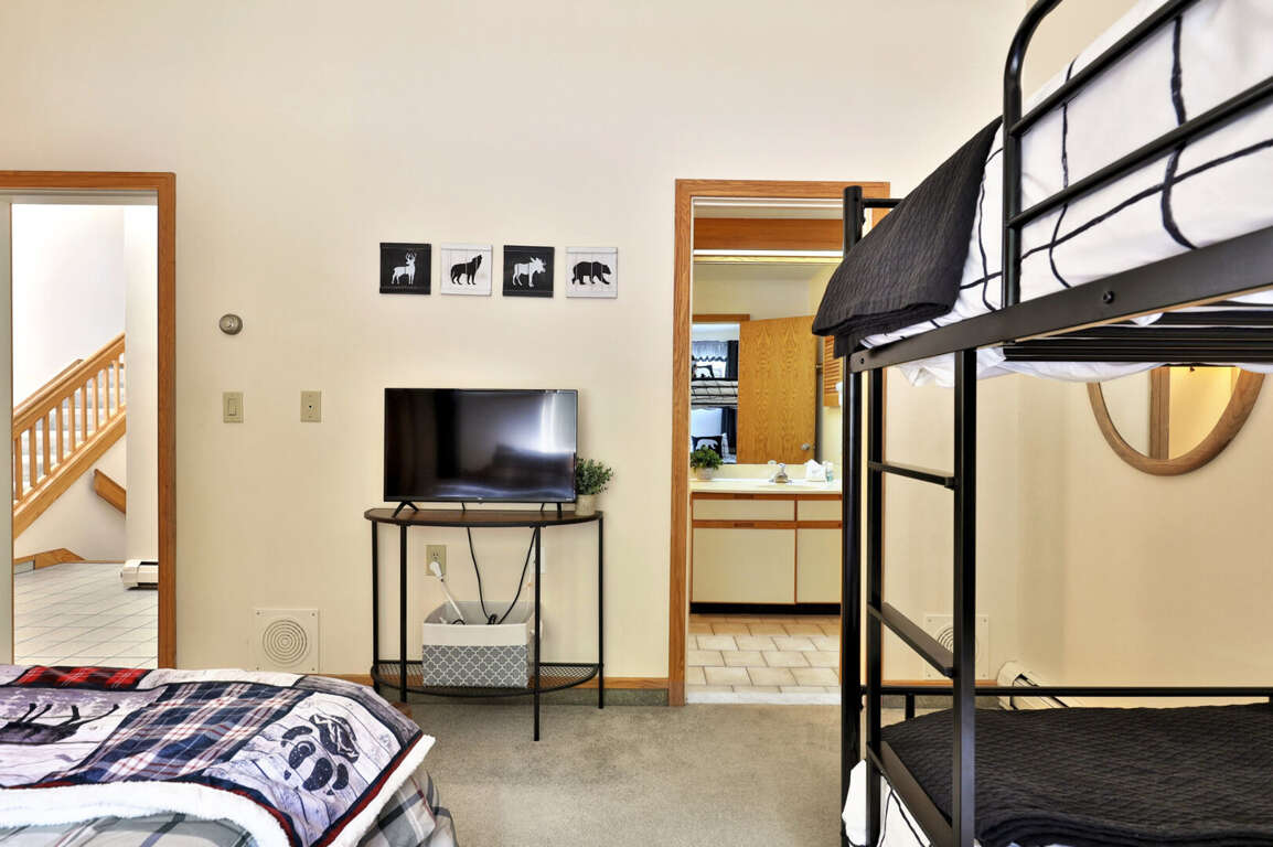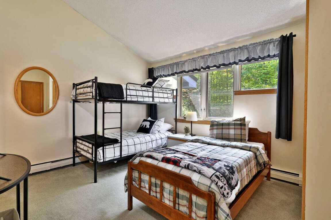 <li>Main floor bedroom with twin bunk bed and twin bed</li>