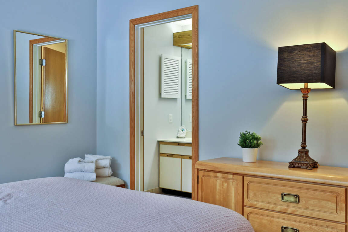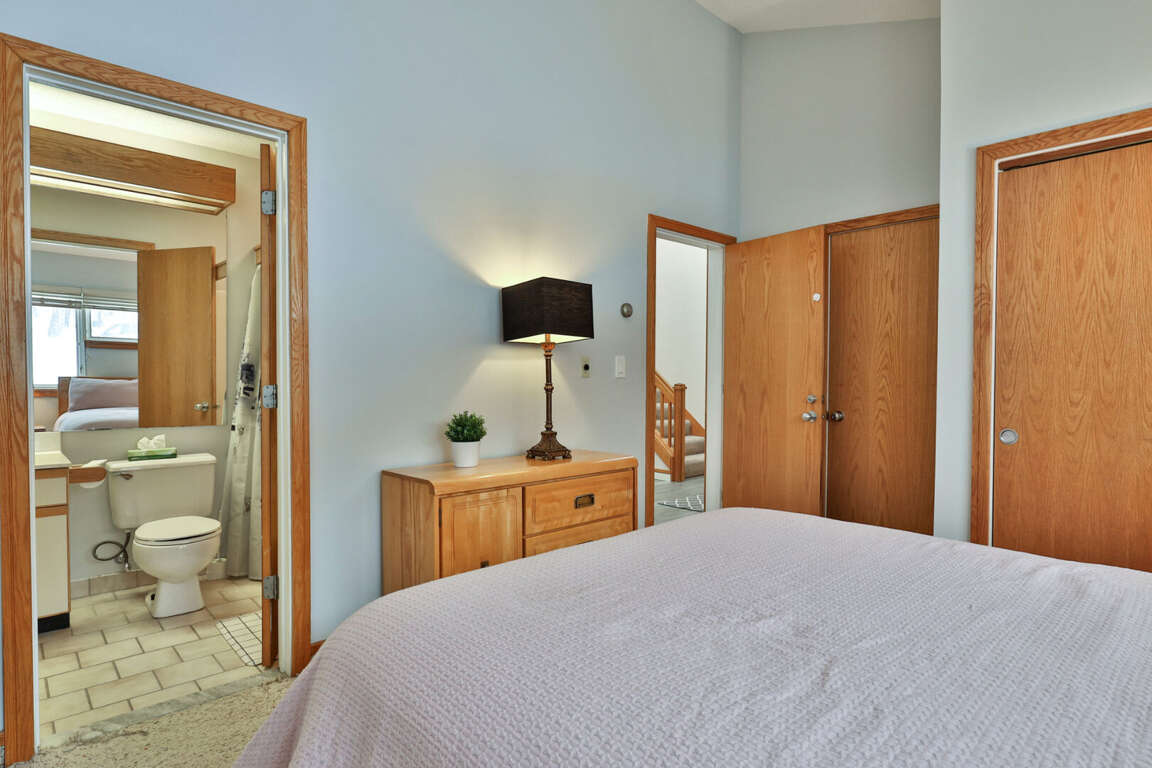 <li>Main Floor Bedroom 1: <strong>Queen bed</strong> with adjacent bathroom.</li>