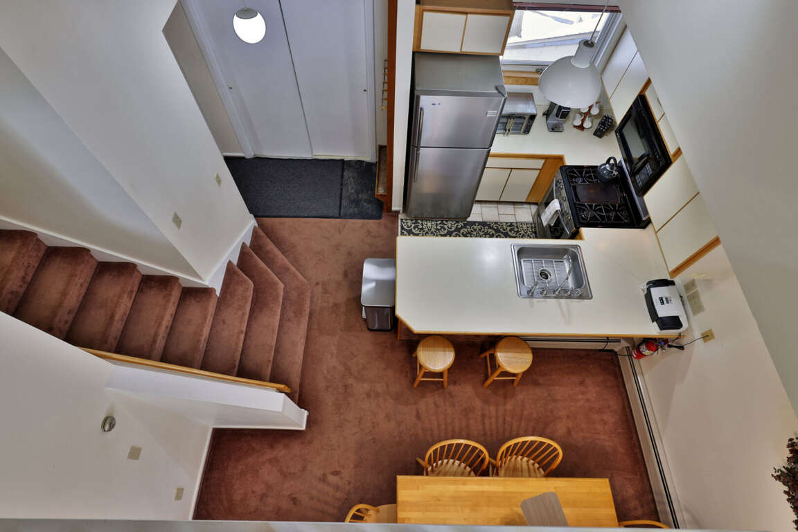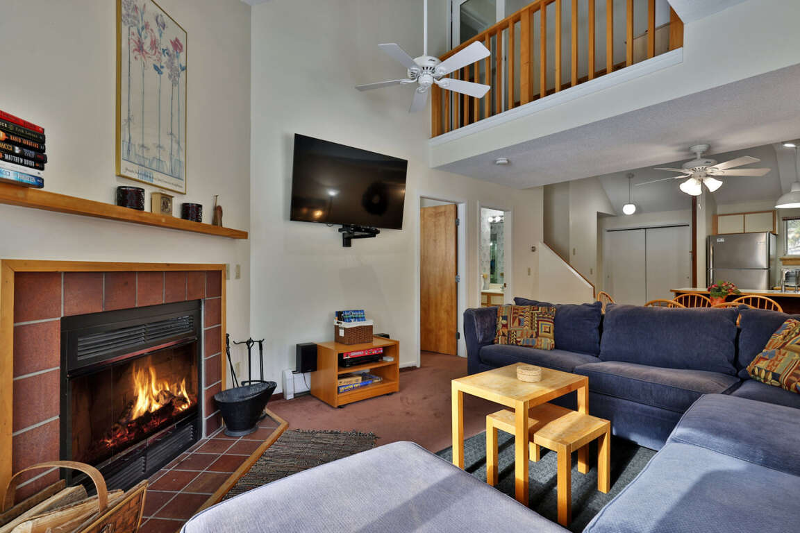 <p>This beautifully designed condo comfortably accommodates up to six guests. The <strong>master loft bedroom</strong> features a king bed, an ensuite bath, and a TV for unwinding after a long day. On the main floor, you’ll find a cozy <strong>queen bedroom</strong>, also with an ensuite bath and TV. The inviting <strong>living room</strong> is the perfect place to gather, with a wood-burning <strong>fireplace</strong>, comfortable seating, and a sofa bed for additional guests. A <strong>fully equipped kitchen</strong> with modern appliances, a coffee maker, and all essential cookware makes meal prep easy, while the dining area is ideal for enjoying home-cooked meals together. Step out onto the <strong>private balcony</strong> and soak in the tranquil garden views, a perfect spot for morning coffee or evening relaxation.</p>