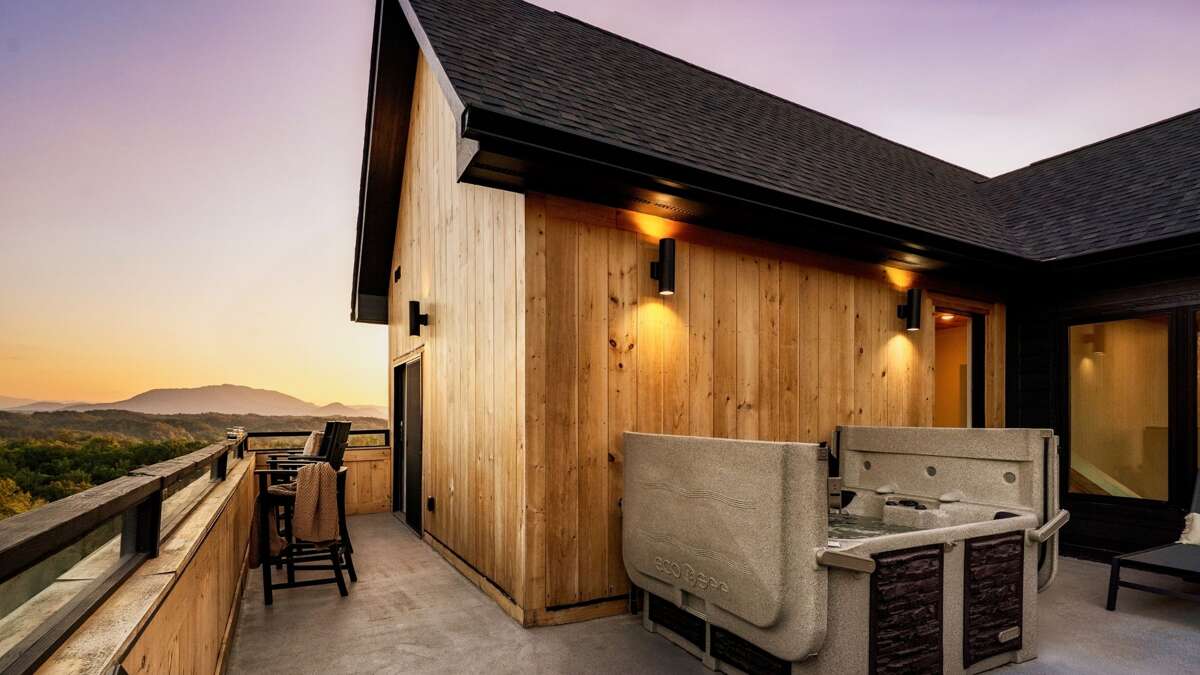 Welcome to the ultimate luxury retreat at Smoky Mountain Yang,  with our brand-new, modern rooftop cabin concept. This stunning 5-bedroom cabin offers a contemporary design with plenty of space for family and friends. Featuring four elegant king bedrooms and one fun-filled bedroom with full-size bed and a Queen/Twin Bunk, it's perfect for groups of up to 13 guests. Located by Soaky Mountain Water Park, Sevierville Convention Center, Sevierville Golf Club, and Wilderness of the Smokies. Parking for 5-6 vehicles.