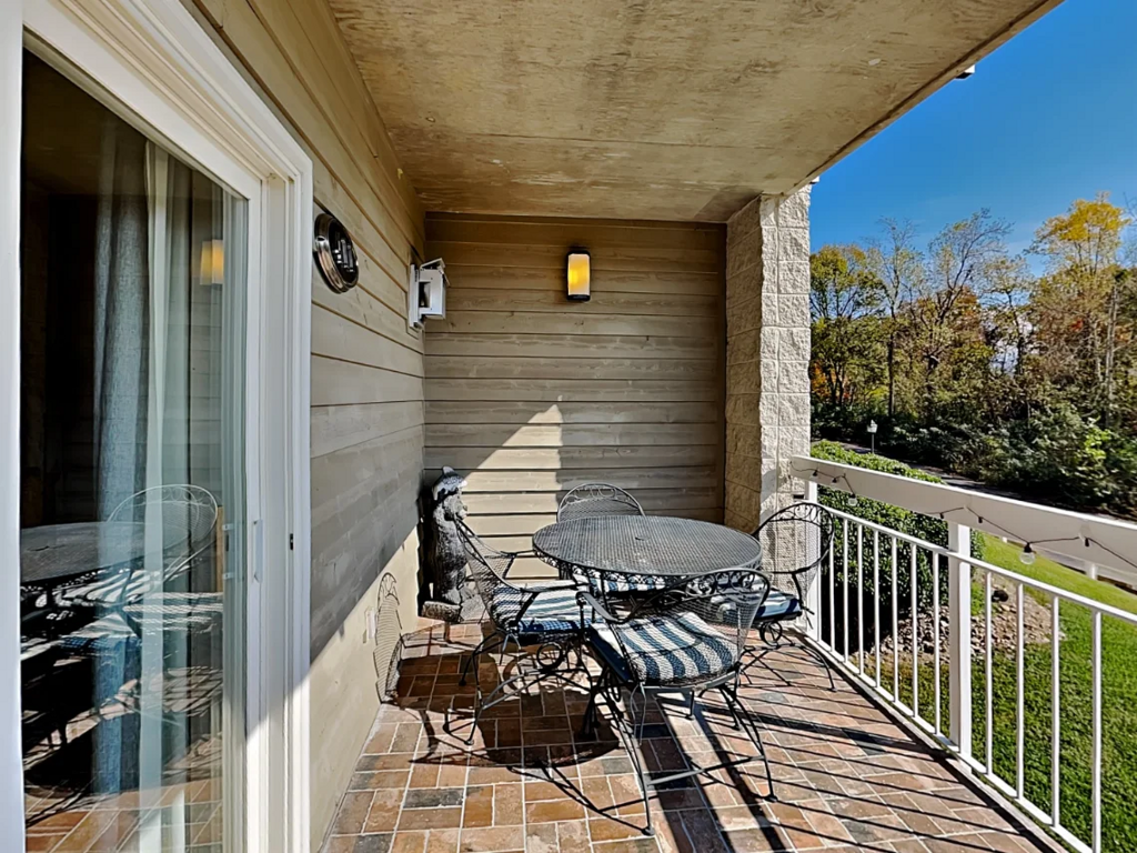 The spacious living room and kitchen are great place to start your morning. Enjoy your cup of coffee in front of the seasonal fireplace, or step out onto the private balcony overlooking the Old Mill District. The kitchen has all your needs for making a great dinner for you to enjoy together at the table. The sofa is a sleeper sofa, allowing for two more people.
