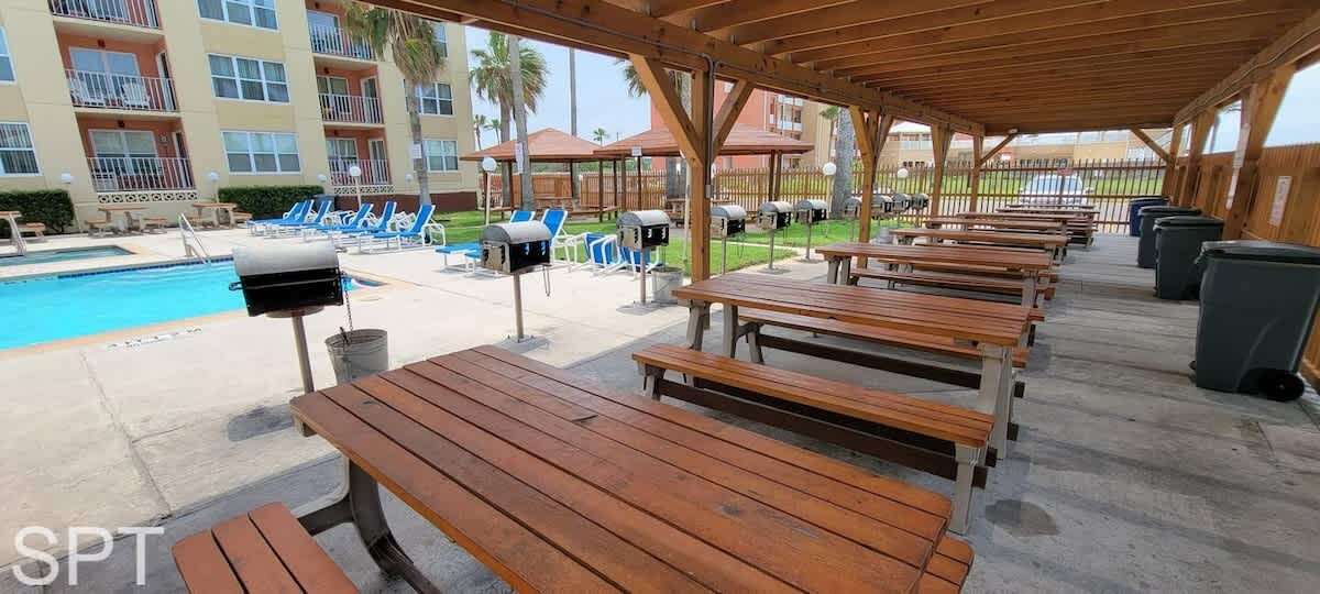 There are approximately 6 community charcoal BBQ pits by the pool and a nice veranda & shaded picnic tables. This is a very hard to find amenity, especially poolside! Located on the 2nd floor, you can avoid waiting for elevators (though one is available).