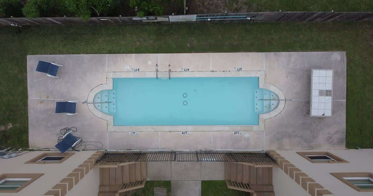 The condo is ground floor with no stairs, and there is a small shared pool for tenants. The pool is not often crowded.