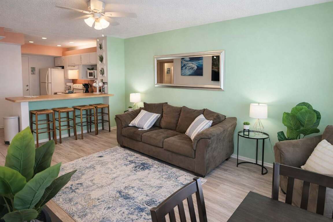 Condo has smart TVS for your app/accounts to wind down to movies after a long day at the beach.