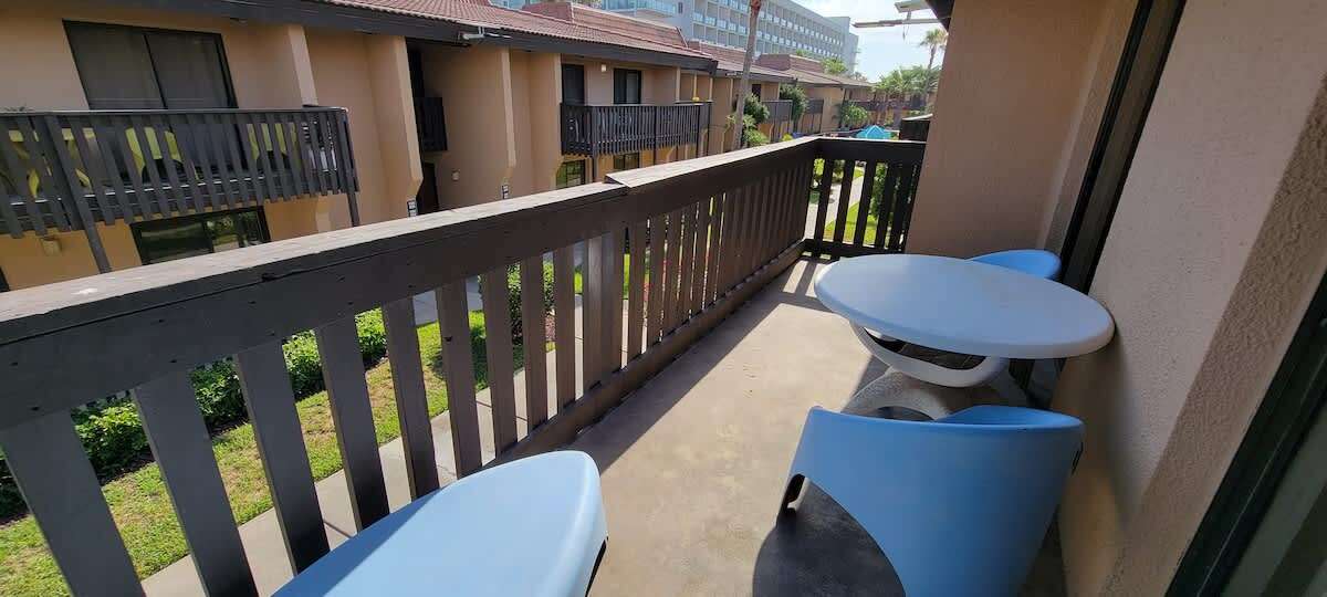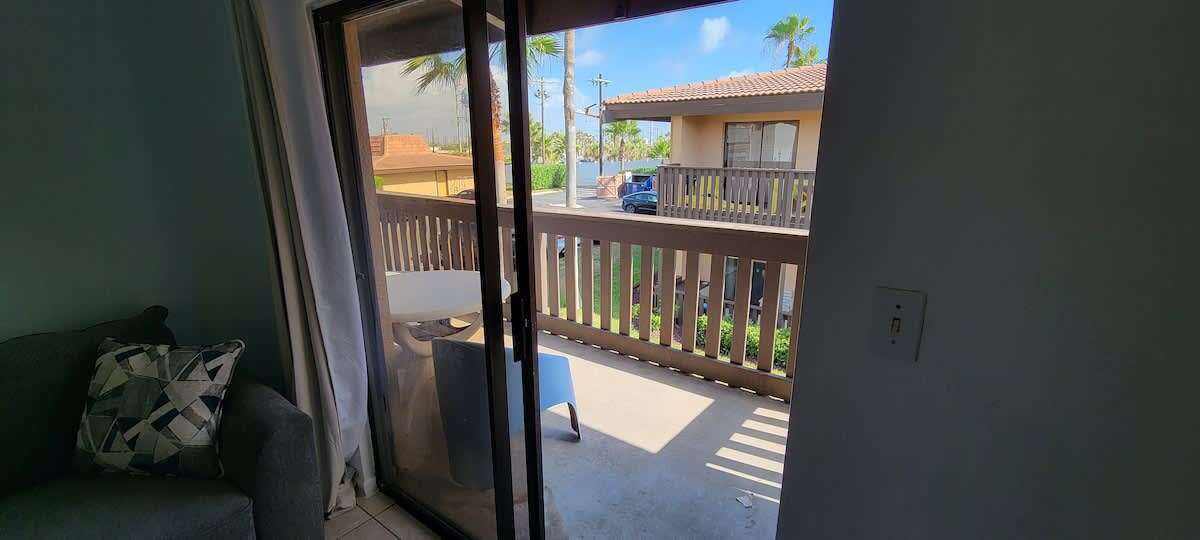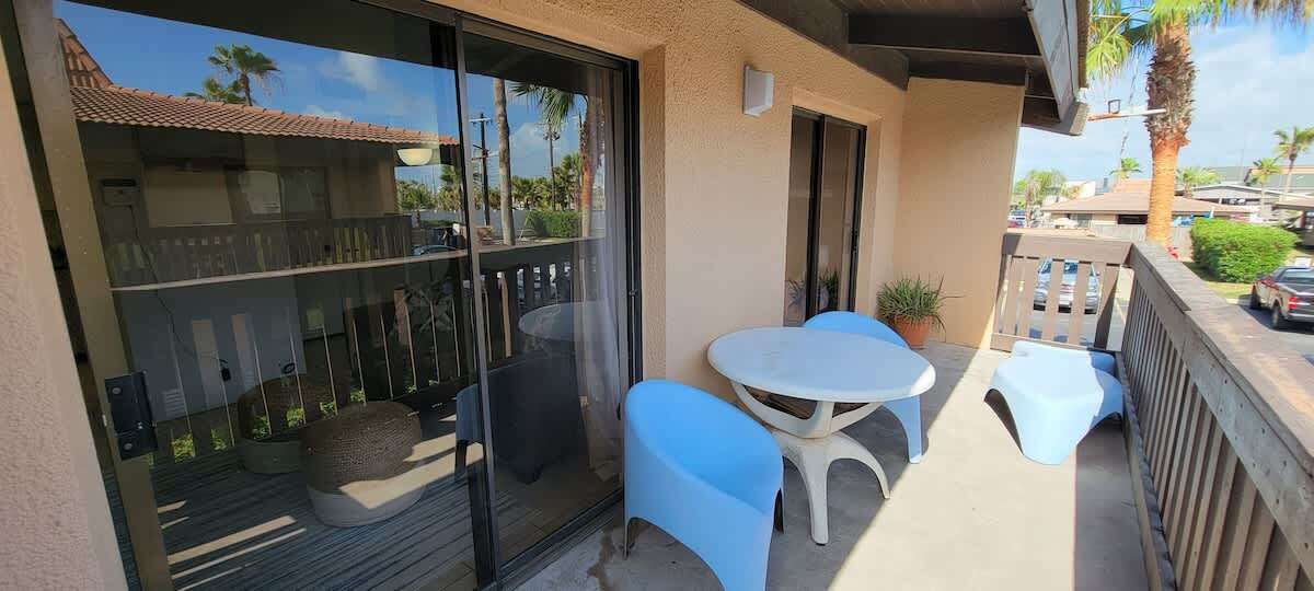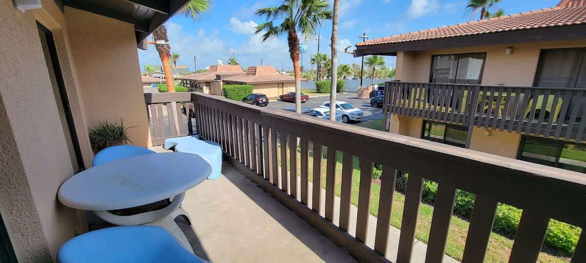 While the complex is beachfront, this condo does not have a beach nor pool view and the patio is there though nothing to brag about. Please accept this prior to booking. Still..you...at least don't have to walk across the street to access the beach or use your condo once you are on the beach with the family nor lug your pop up tent or beach toys too far.