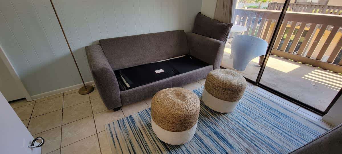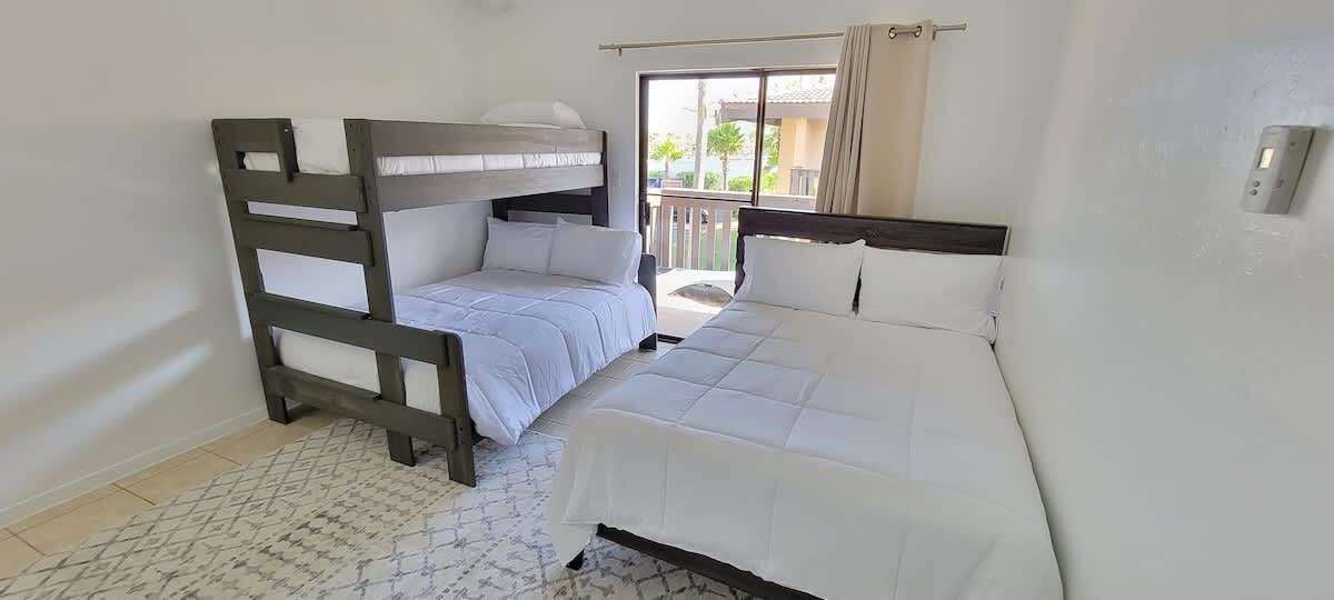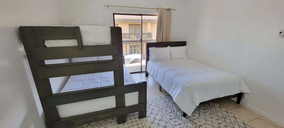 One of the great features that is quite rare for a 1 bedroom condo is the great amount of sleeping space. The 1 bedroom has a stand alone full sized bed, plus a bunk bed that is a twin over full. In the living room, there is a pull out couch as a full sized bed. We do also provide a full sized airbed (do bring extra bedding though if you wish to use)