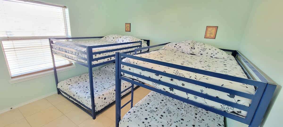 *Up to 8 people - has 2 full sized bed bunk beds for a total of 8 beds in the "bunk room" 2nd bedroom. Queen in master. Pull out couch in living room