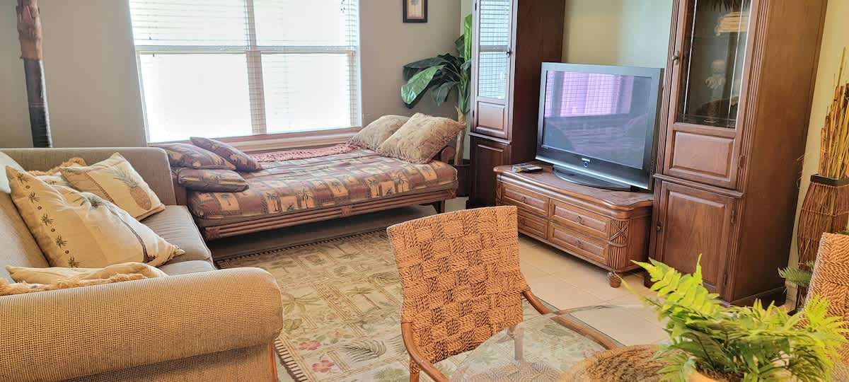 For families on a budget looking alot of sleeping space, this two bedroom has more than the norm. Our master bedroom has a queen bed, while the second bedroom has two newer bunk beds that are like adult sized with full sized mattresses. The living room has a small pul out couch