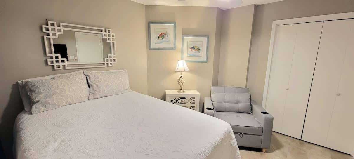 Bdrm 2 - Queen bed, lounge chair converts to twin bed, 43" HDTV