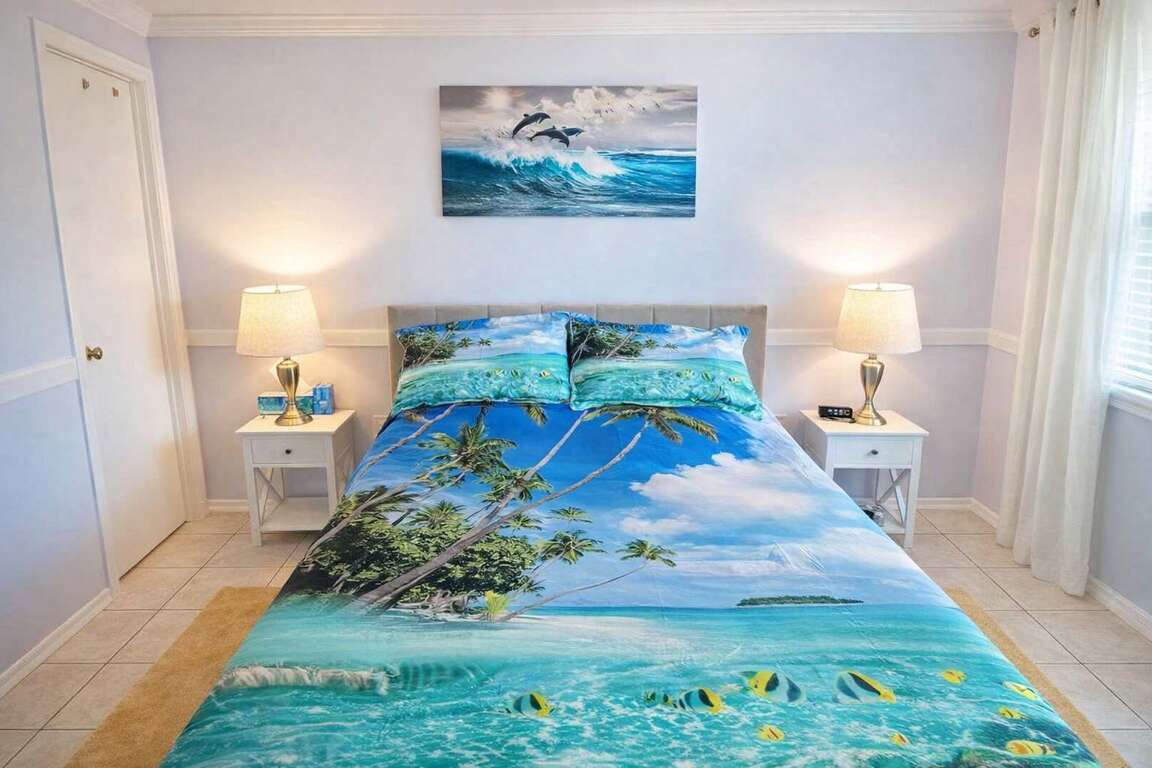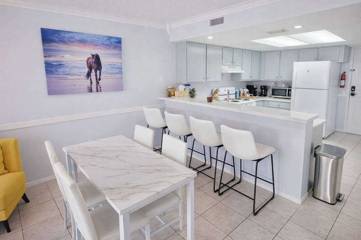 This 2 bedroom, 1.5 bath condo is on the 3rd floor. that has 100% brand new furniture as of Jan 15 2024 including all new paint and fixtures. Featuring fully equipped kitchen for easy meal prep, an in unit washer & dryer, and many beds to accommodate families.