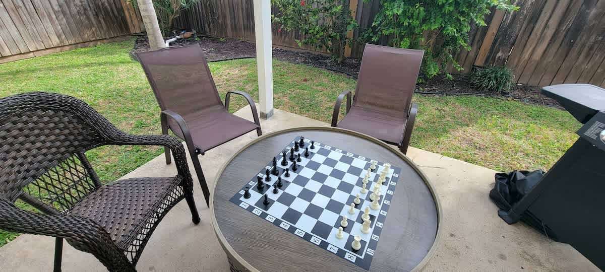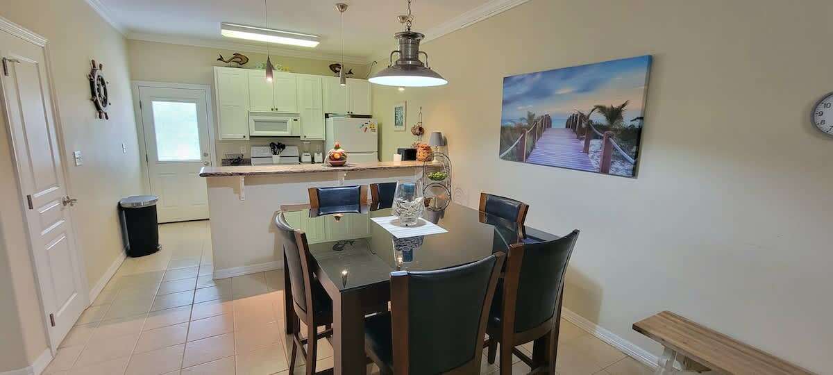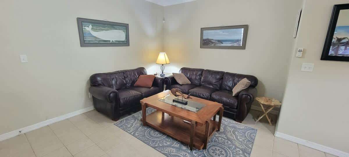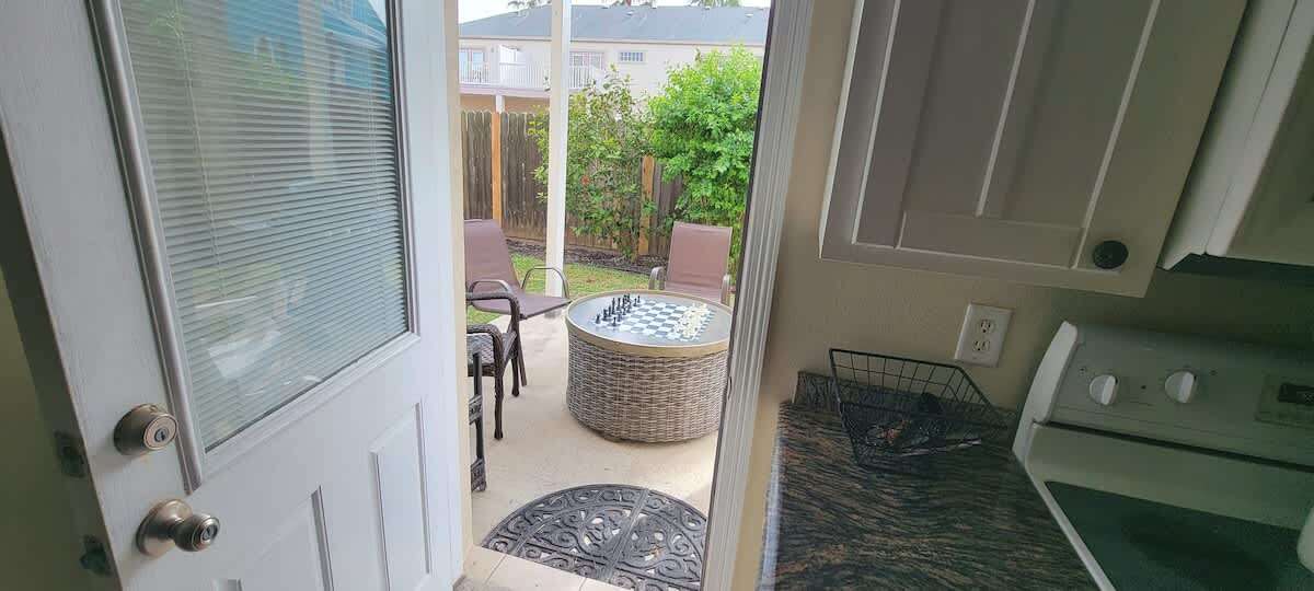 Our first floor condo is 1 level with no stairs, and has.a very unique outdoor patio with furniture & a gas grill to BBQ up some fun food. Please bring LP/gas as we don't provide that. This condo is all tile floors, granite counters, stainless appliances & a fully equipped kitchen with all you need for family meals. Kitchen has both an eat in counter and a large dining table.