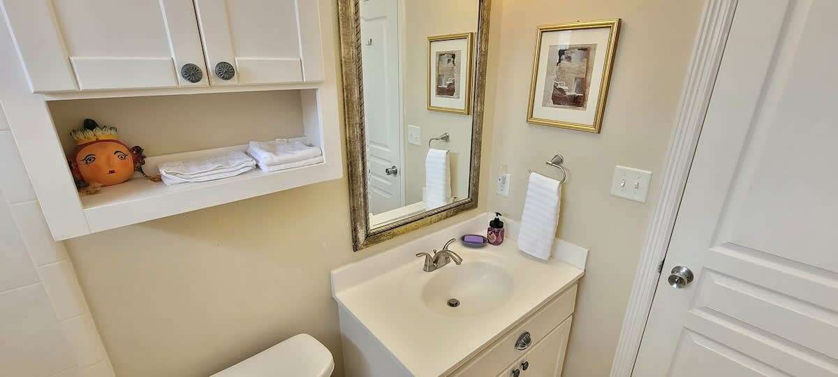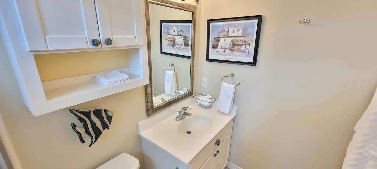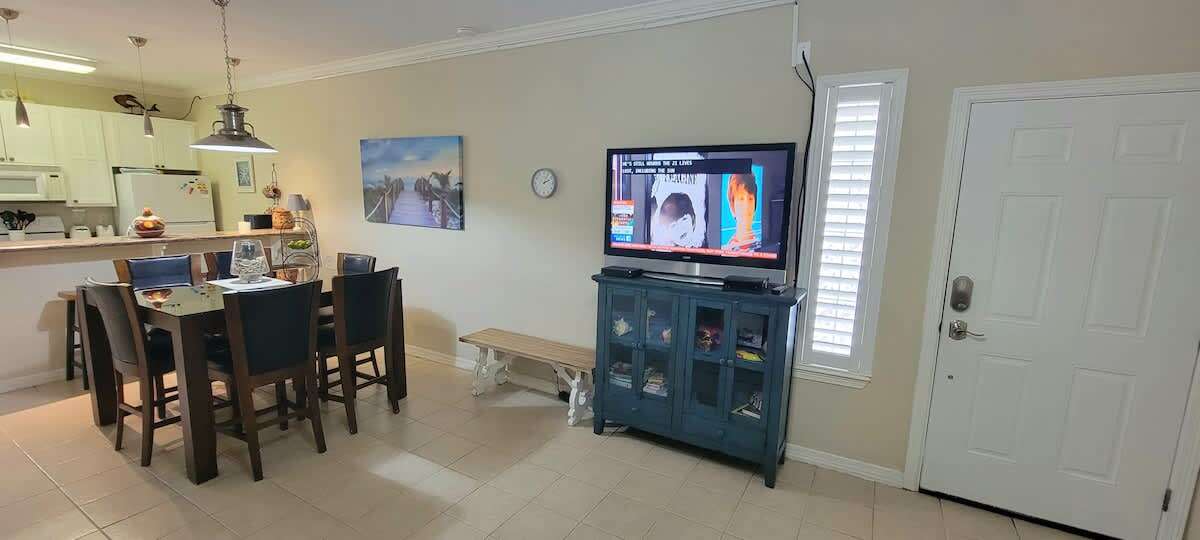 There is a 2nd full bath between the master & 2nd bedroom as well as a stackable washer & dryer for quick swimsuit clean up. We provide a unique e lock code for you stay so you dont have to worry about keys. The living room and master bedroom have smart TVs + we have high speed internet/wifi in the condo.
