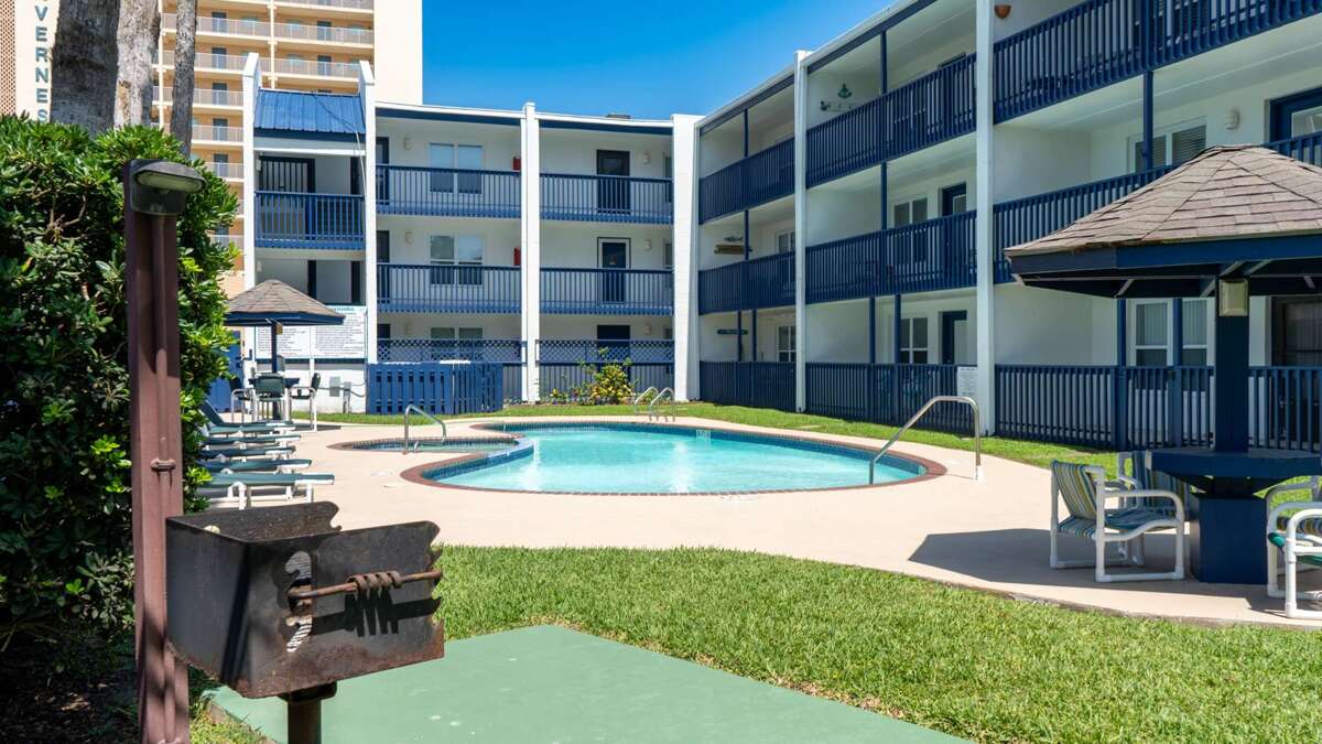 A lovely tropical courtyard with a sparkling pool, picnic areas and BBQ pits invites you to enjoy the warm outdoors. Grassy areas are perfect for your outdoor games and the spacious pool deck provides plenty of room for lounging by the pool