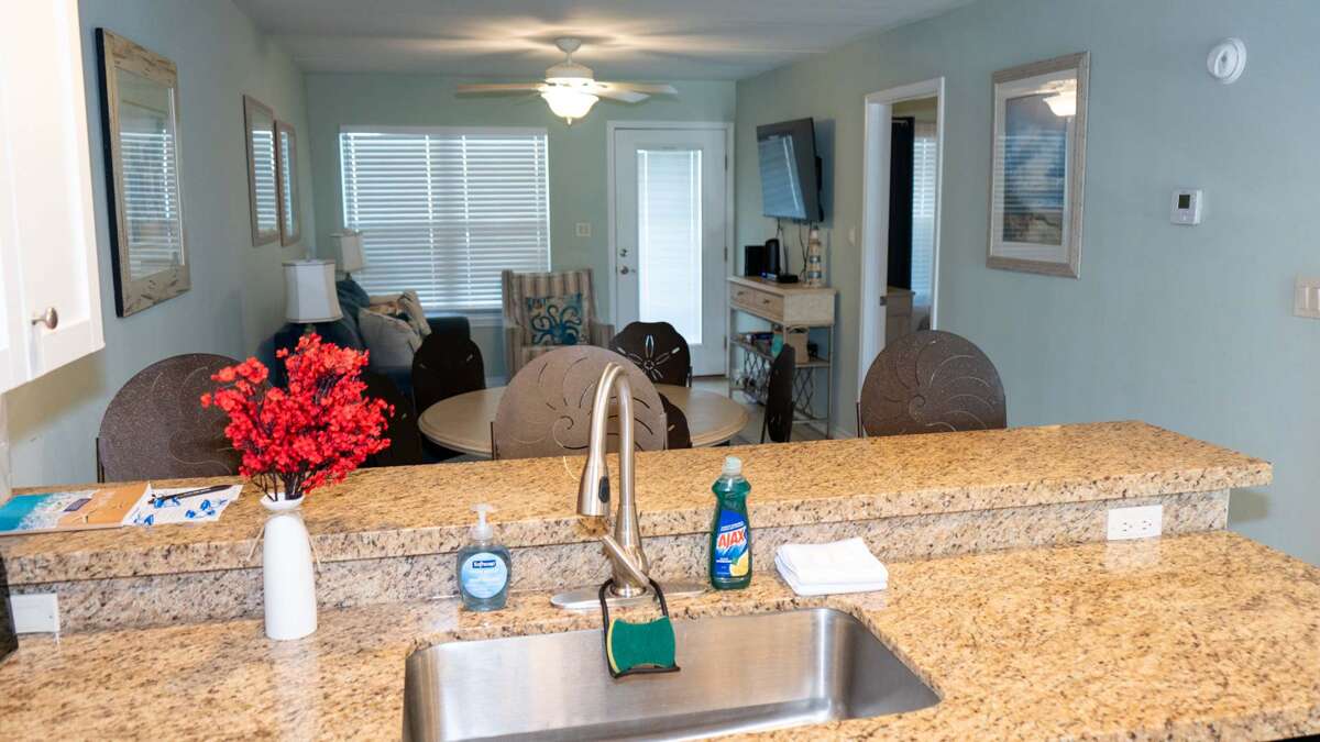 Your walk to the beach is convenient since Surfside II is located directly across from the beach access and an outside rinsing station makes it easy to wash away sandy feet upon your return.