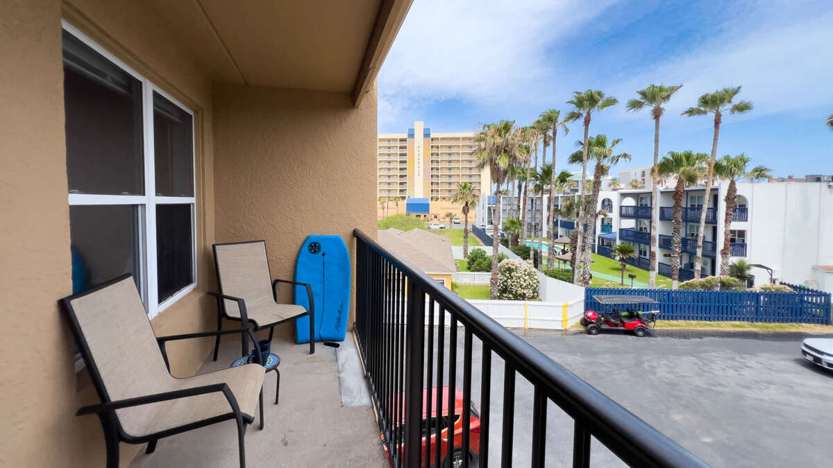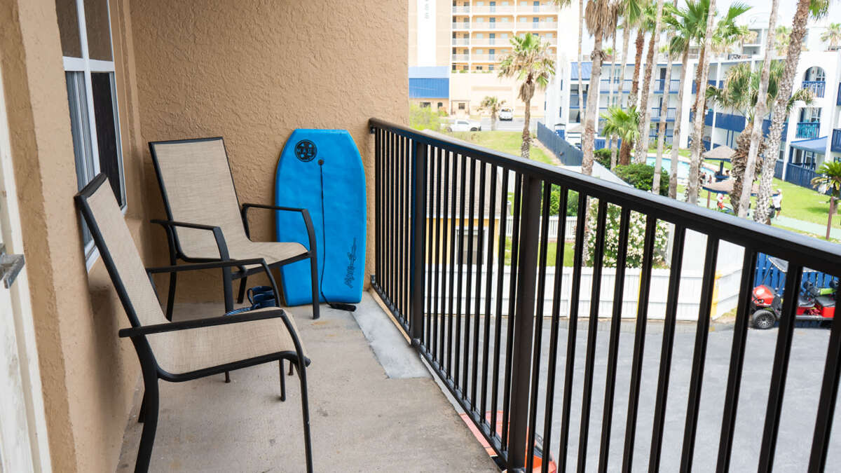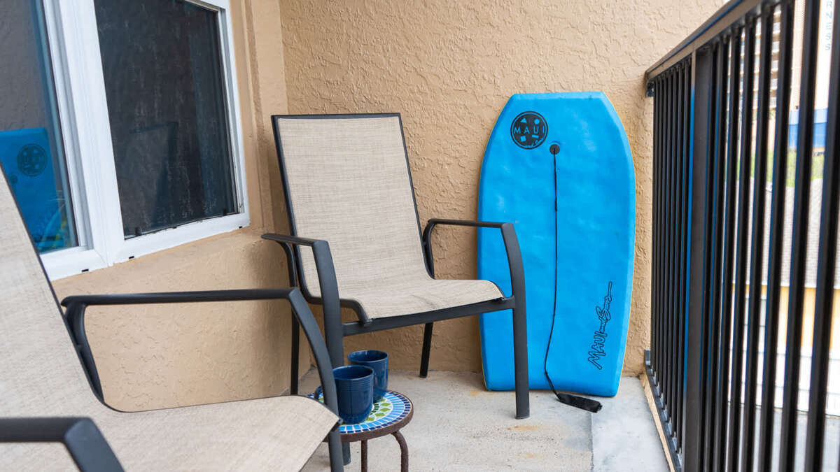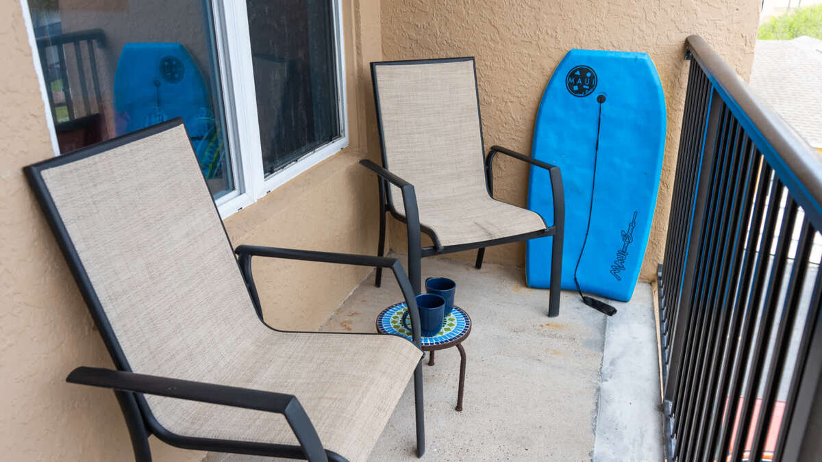 While there are stairs (no elevator), this 3rd floor space offers a great view of the courtyard with no noise above you. The condo has a large patio with chairs for morning coffee or a sunset margarita.