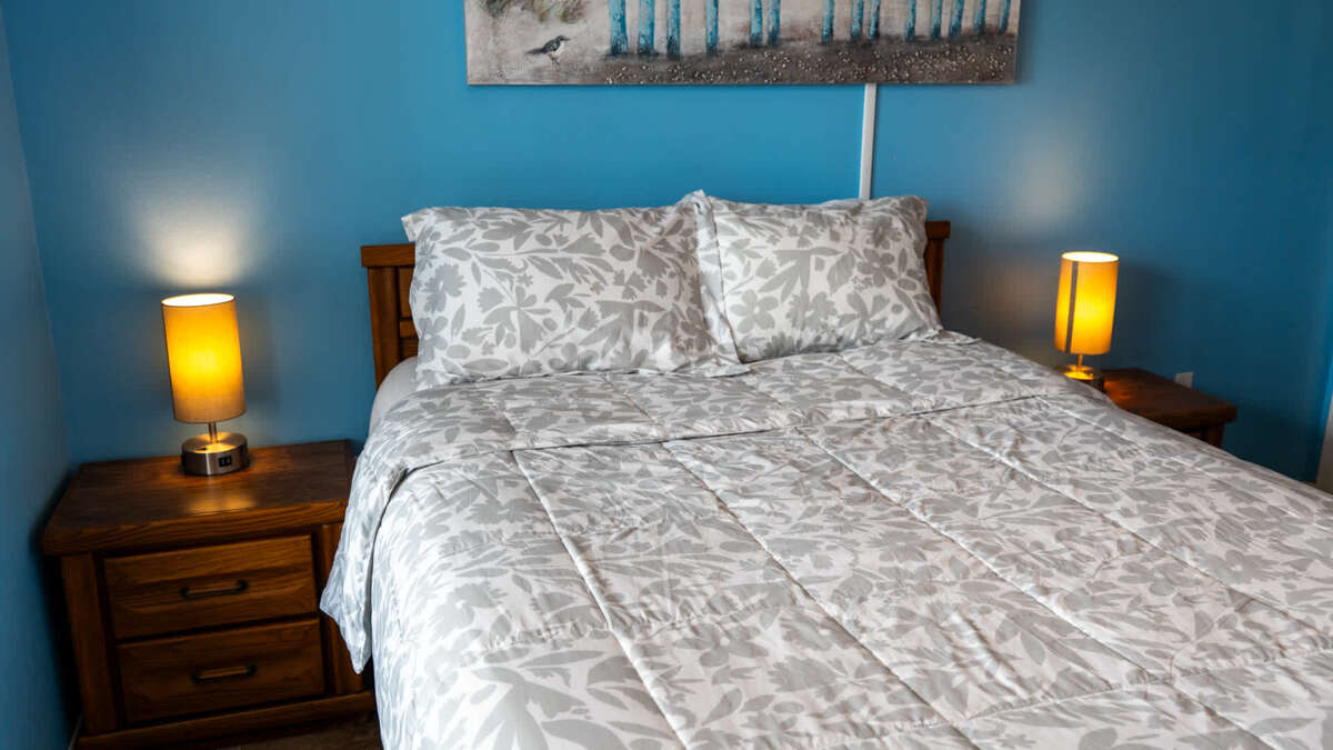 Bedding includes a Queen in the master, two single in the 2nd bedroom, a couch (not pull-out), and an airbed. Please bring bedding if you plan on using the couch or the airbed.